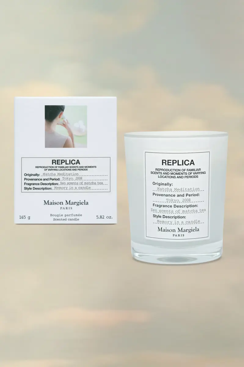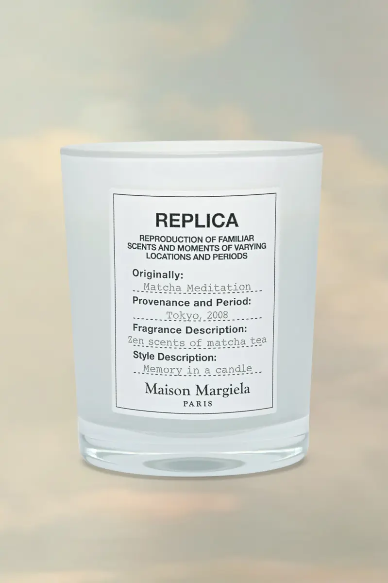 Replica Matcha Meditation Candle conjures a peaceful moment with oneself, at home, on a bright afternoon. With senses awakened and feeling every gesture, focused on the now, the scent transports you by the soothing steam of a warm cup of matcha tea. The Zen scents feature top notes of bergamot essence and green tea accord, with middle notes of matcha accord and jasmine, and base notes of moss accord and cedar essence. Made from high quality mineral wax, this cotton wick candle lasts up to 40 hours. Size 165g. The Replica collection assembles iconoclast fragrances that have the universal power to trigger personally cherished moments. In line with the Maison’s minimalistic approach, the Replica candle is simple yet sophisticated. A cotton label, resembling the tags used on clothing and accessories for the Replica fashion collection, identifies each fragrance.