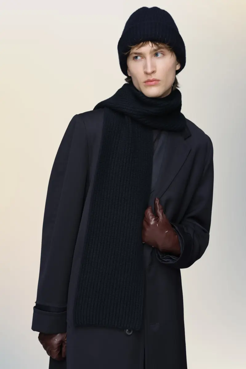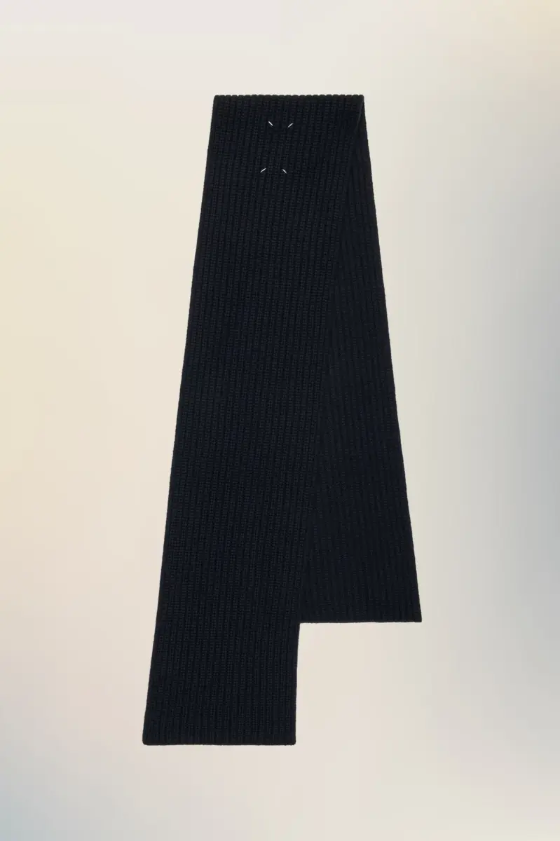 Minimal yet tactile, this ribbed scarf is crafted in pure cashmere for warmth and softness. Its clean edges and graphic proportions highlight the interplay between structure and simplicity. Maison Margiela’s signature, the four stitches, appear in the centre; the opposite of a label.
