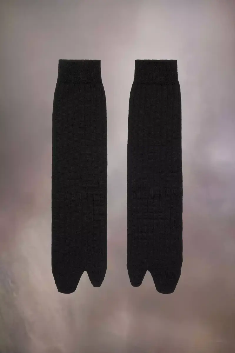 The jersey-wool Tabi ankle socks feature a single white stitch showing the hand of Maison Margiela. They feature the Tabi split-toe, inspired by the traditional 15th century Japanese sock bearing the same name – launched for the Maison’s debut collection in 1989. It captures the avant-garde and insubordinate spirit of the Maison and exists as a heritage classic, continually explored through each collection. Gauge 18.