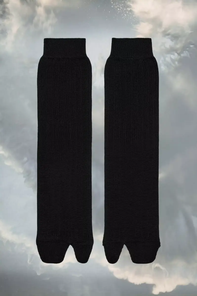 The jersey-cotton Tabi ankle socks feature a single white stitch showing the hand of Maison Margiela. They feature the Tabi split-toe, inspired by the traditional 15th century Japanese sock bearing the same name – launched for the Maison’s debut collection in 1989. It captures the avant-garde and insubordinate spirit of the Maison and exists as a heritage classic, continually explored through each collection. Gauge 18.