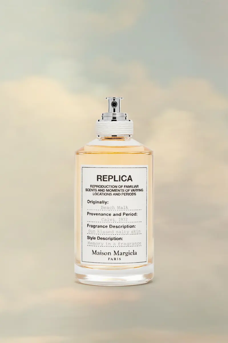 “Replica Beach Walk eau de toilette captures the vibrant memory of a stroll by the sea on a warm summer day. Pure, sunny and blissful, it reminds you of the ocean breeze under the heat of the sun as your feet sink into the hot sand, with the taste of salt and the scent of sunscreen. The memory scent is recreated with coconut milk, musks, bergamot and ylang ylang. Size 100ml. The Replica collection assembles iconoclast fragrances that have the universal power to trigger personally cherished moments. True to its ‘creative collective’ approach, Maison Margiela collaborates with the best perfumers, chosen for their genuine connection with the memory, stimulated by the artistic performance of composing a fragrance asa universal invitation to awaken, celebrate and share unforgettable feelings and emotions. In line with the Maison’s minimalistic approach, the Replica bottle is simple yet sophisticated. A cotton label, resembling the tags used on clothing and accessories for the Replica fashion collection, identifies each fragrance.”