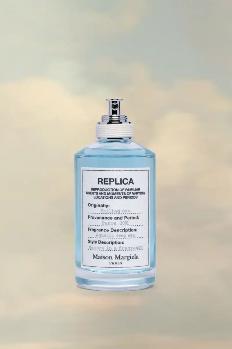 “Replica Sailing Day eau de toilette recreates the fresh and salty experience of an invigorating sailing day. It conjures the freshness of the sea and wind on your face with the soft warmth of the sun on your back – a communion with the endless deep ocean. The Maison recreates the deep sea freshness with aquatic accord and coriander and the underwater scents with red seaweed essence and ambergris for a woody aquatic effect. Size 100ml. The Replica collection assembles iconoclast fragrances that have the universal power to trigger personally cherished moments. True to its ‘creative collective’ approach, Maison Margiela collaborates with the best perfumers, chosen for their genuine connection with the memory, stimulated by the artistic performance of composing a fragrance asa universal invitation to awaken, celebrate and share unforgettable feelings and emotions. In line with the Maison’s minimalistic approach, the Replica bottle is simple yet sophisticated. A cotton label, resembling the tags used on clothing and accessories for the Replica fashion collection, identifies each fragrance.”