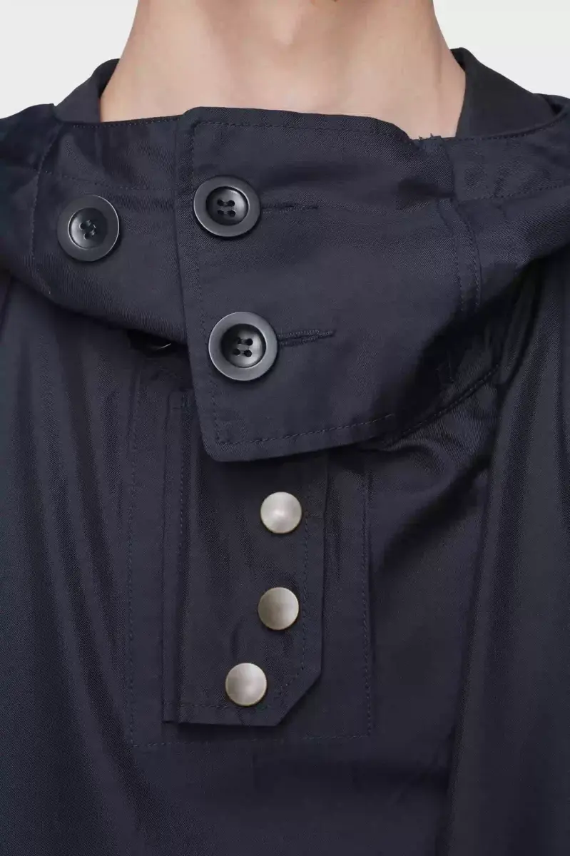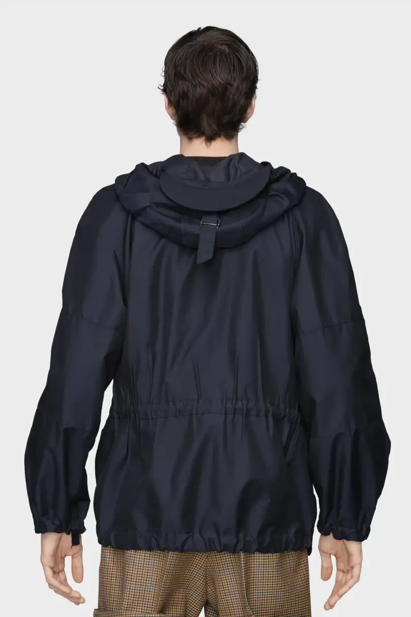 Cut with a relaxed silhouette, this jacket is finished with a stand collar and flap pockets – drawing on the codes of practical countryside outerwear. The technique Memory of the creases preserves the traces of worn folds, adding subtle texture and a lived-in quality. Maison Margiela’s signature, the four stitches, appear at the back; the opposite of a label.