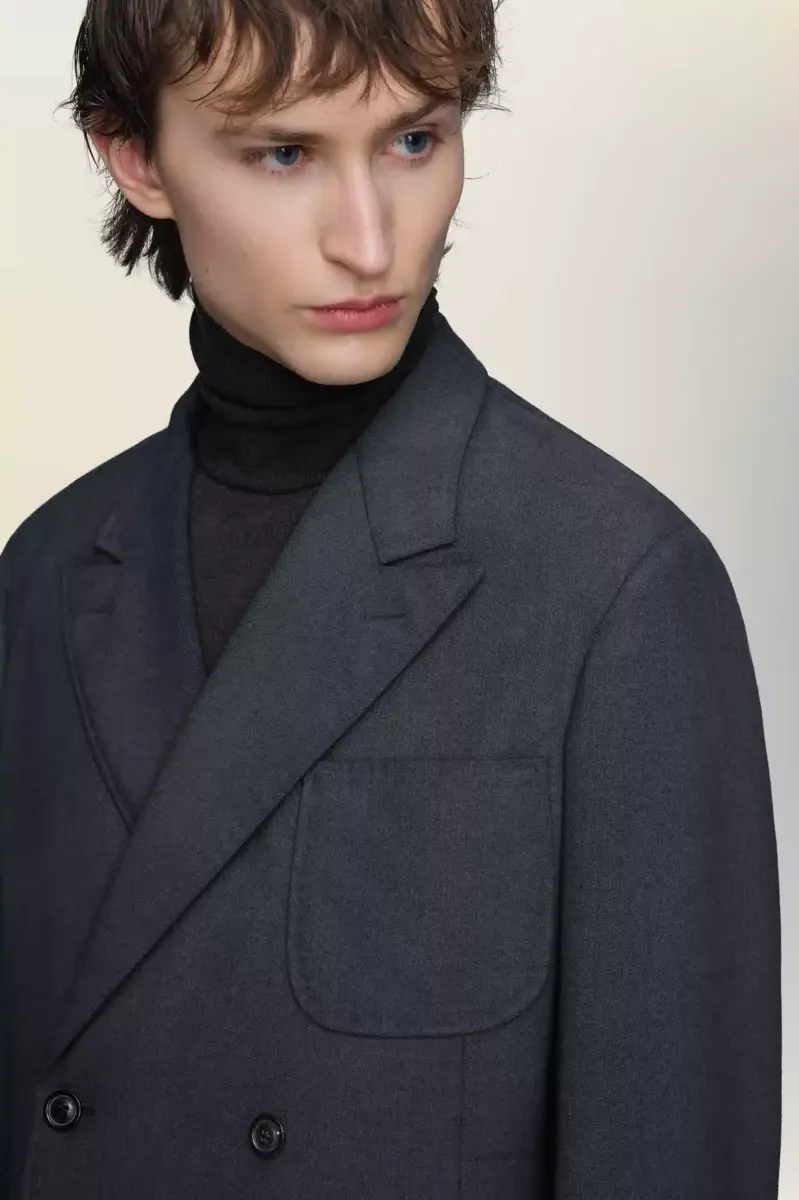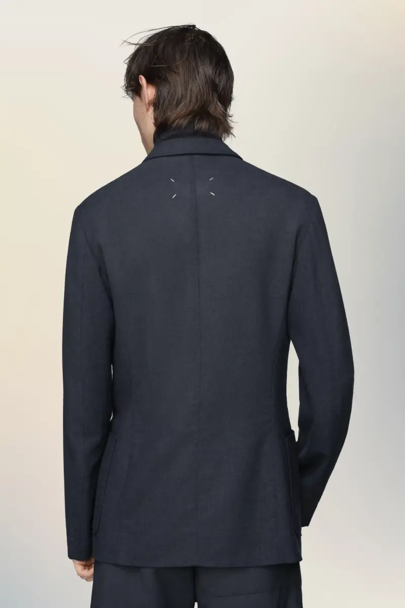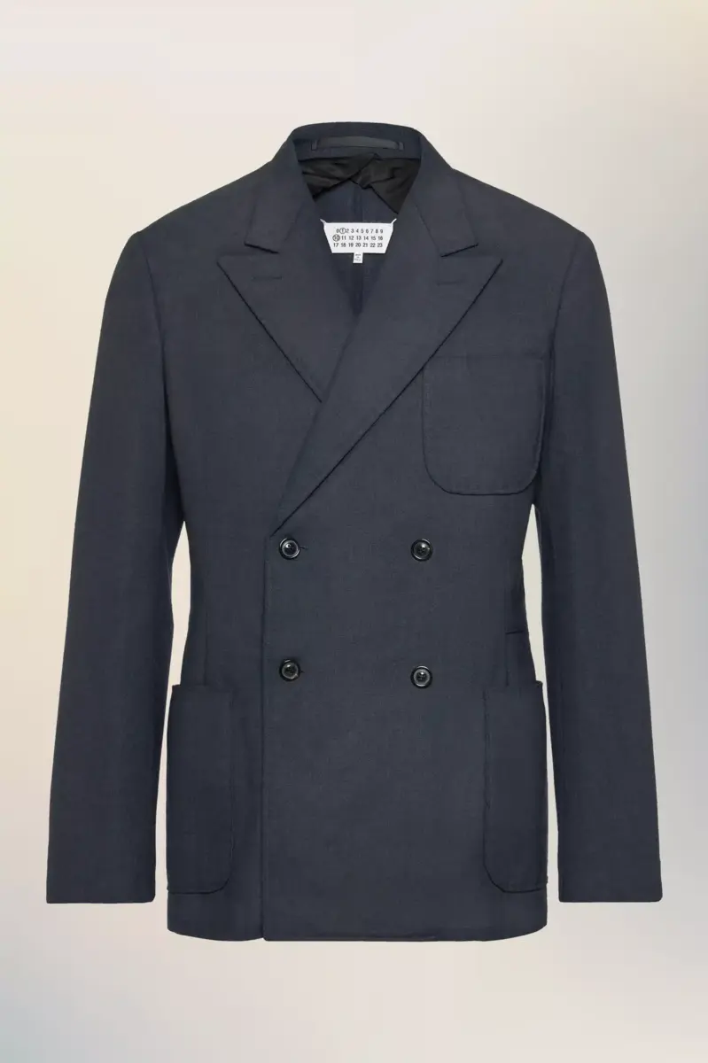 Featuring a chest pocket and deep welt pockets at the sides, this double-breasted blazer is cut with soft lines and a notched lapel. Treated with a sunfaded technique, the piece carries a lived-in nuance that tempers its tailored structure. Maison Margiela’s signature, the four stitches, appear at the back; the opposite of a label.