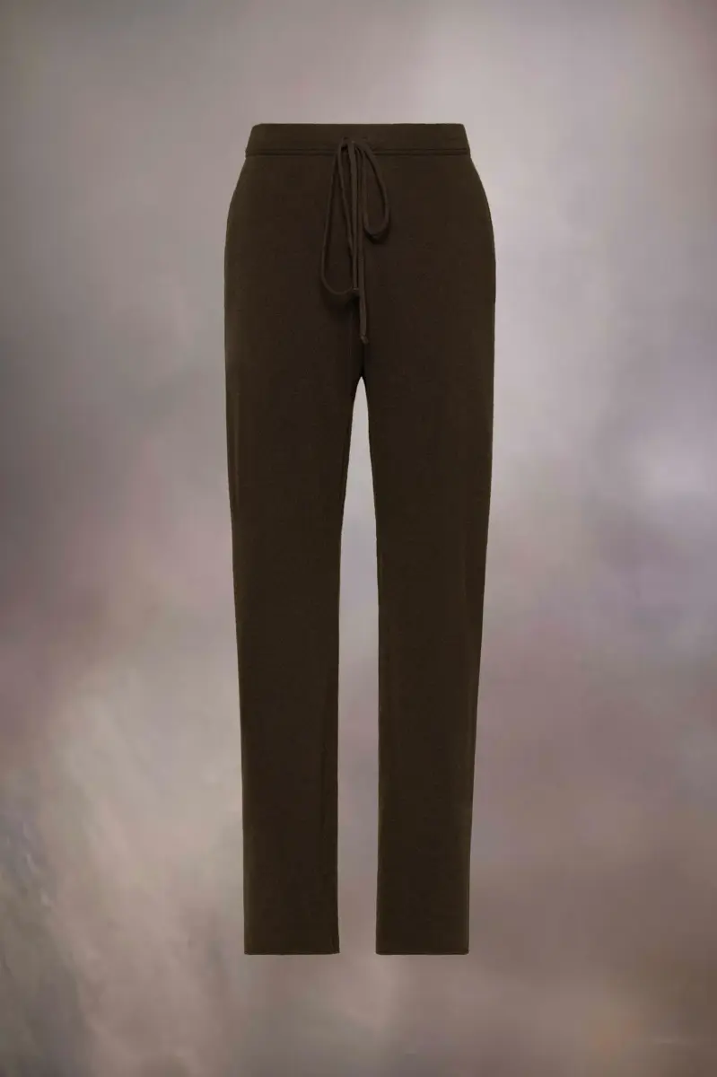 The tracksuit trousers are crafted from a soft cashmere wool blend. Designed as loungewear, they feature a ribbed waistband with extra-long drawstring for an adjustable fit. The trousers are designed with side pockets and a straight-leg, lightly pooling at the floor for a relaxed take. Maison Margiela’s signature, the four stitches, appear at the back; the opposite of a label.