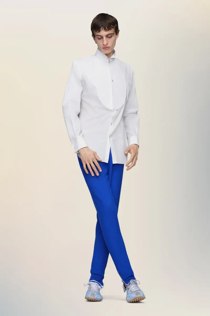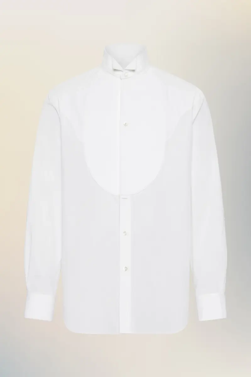 Crafted in crisp cotton poplin, this formal shirt is tailored with a structured bib front and pointed collar – referencing traditional dress codes. Maison Margiela’s signature, the four stitches, appear at the back; the opposite of a label.