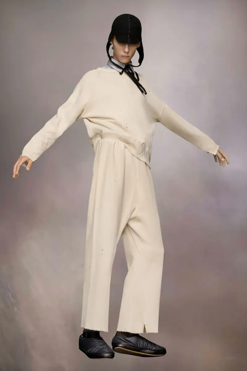 In organic cotton fleece, the round-neck sweatshirt features slashed long sleeves and a handwritten Margiela logo at the hem. Raw edges present an undone aesthetic. Maison Margiela’s signature, the Four stitches, appear at the back; the opposite of a label.