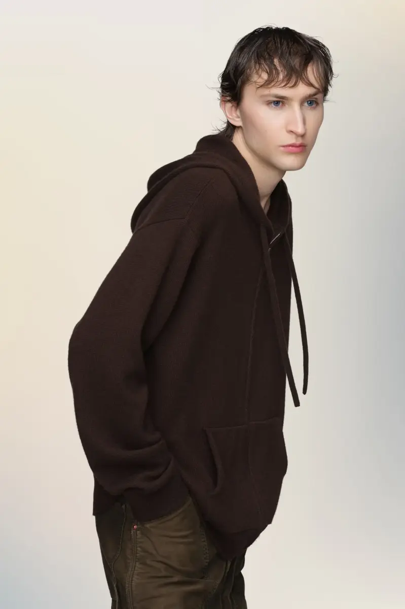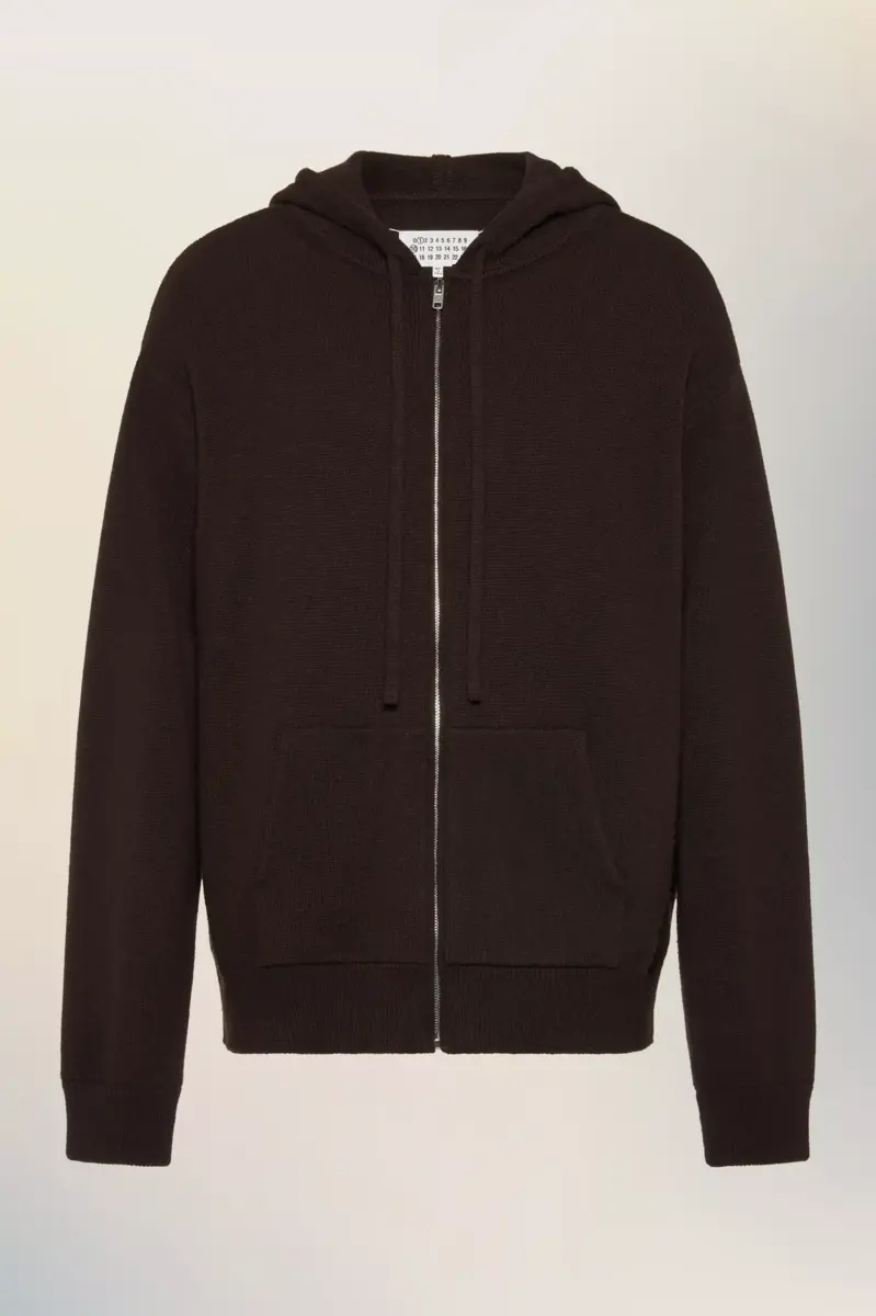 Knitted zip-up hooded sweatshirt in soft cashmere