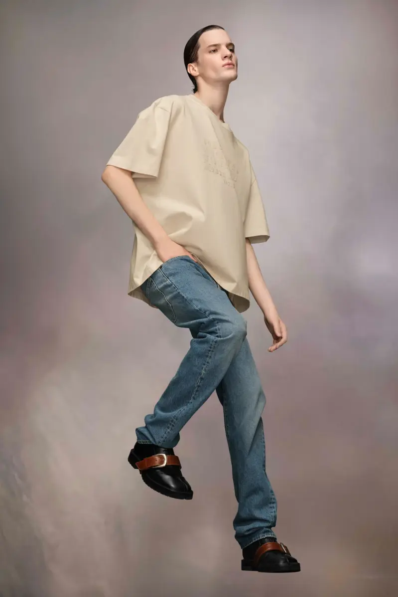 In heavy jersey, the T-shirt features the numerical logo in reverse embroidery across the front. It has a loose fit with a round neck. Maison Margiela’s signature, the Four stitches, appear at the back; the opposite of a label.