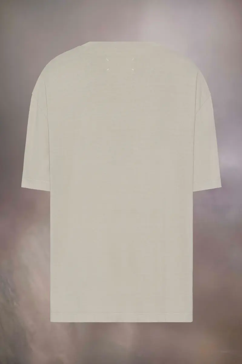 The oversized T-shirt comes in cotton jersey with a round neck and classic short-sleeved silhouette. It features a printed numeric logo across the chest. Maison Margiela’s signature, the four stitches, appear at the back; the opposite of a label.