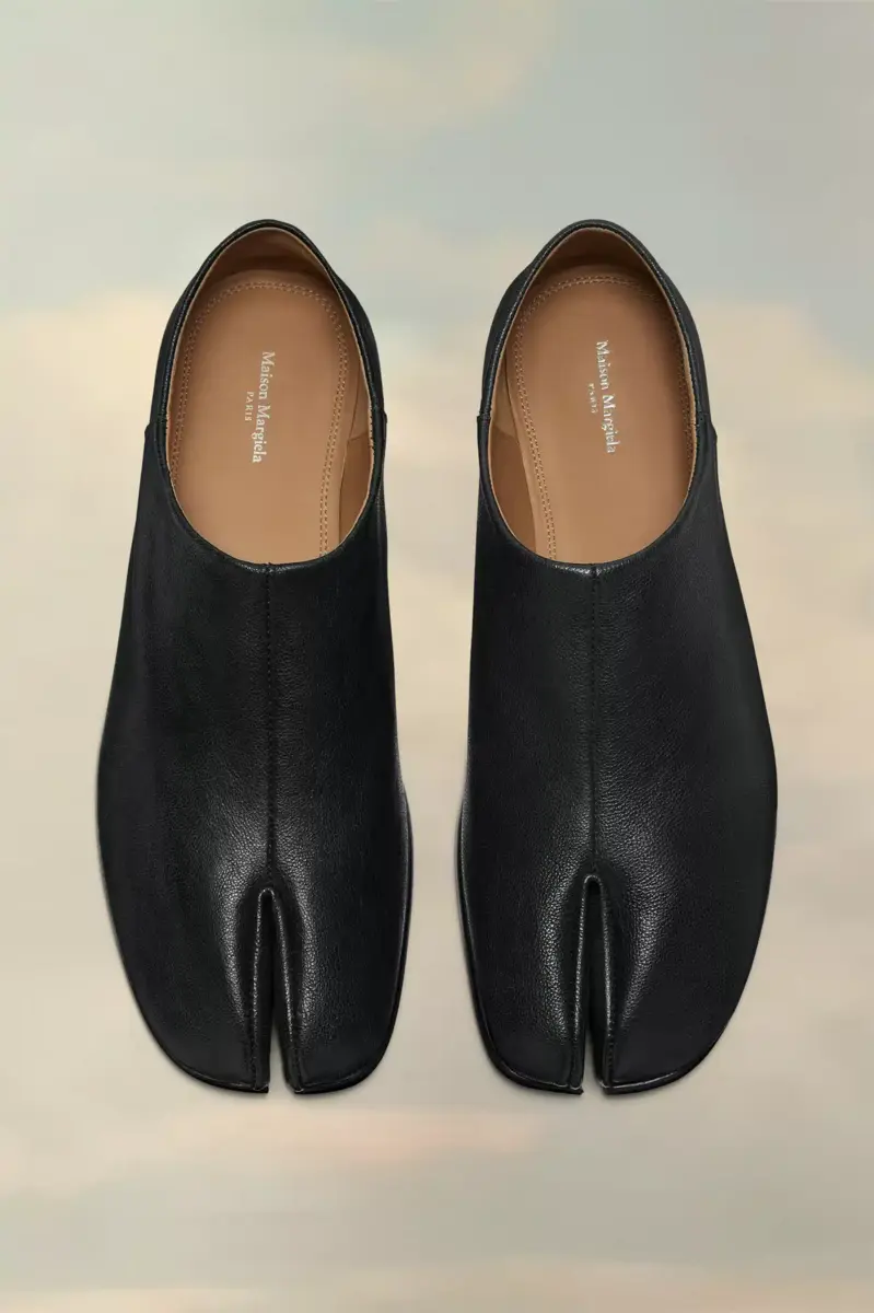 Crafted from soft nappa leather, the babouche shoes feature the Tabi split-toe, inspired by the traditional 15th century Japanese sock bearing the same name – launched for the Maison’s debut collection in 1989. It captures the avant-garde and insubordinate spirit of the Maison and exists as a heritage classic, continually explored through each collection.