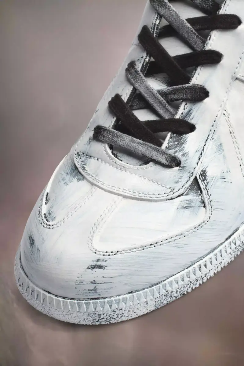 Replica sneakers in calfskin with the numerical logo on the tongue and iconic stitch mark at the back. They feature a glossy finish on the Maison’s bianchetto treatment, created by hand. The Maison’s iconic Replica sneakers are inspired by Austrian sports shoes from the seventies. Details on the Replica styles are continually reworked in line with the season’s inspirations.