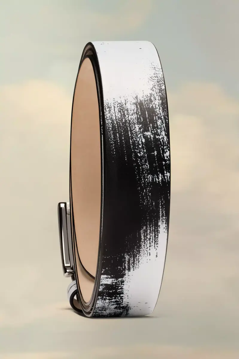 Crafted from leather, this adjustable belt features a classic rectangular buckle.