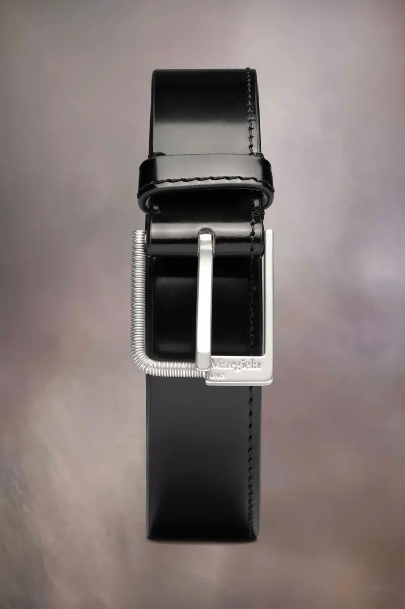 Crafted from grainy leather, the belt features an adjustable design and rectangular buckle with a cut-off logo for an off-kilter finish.