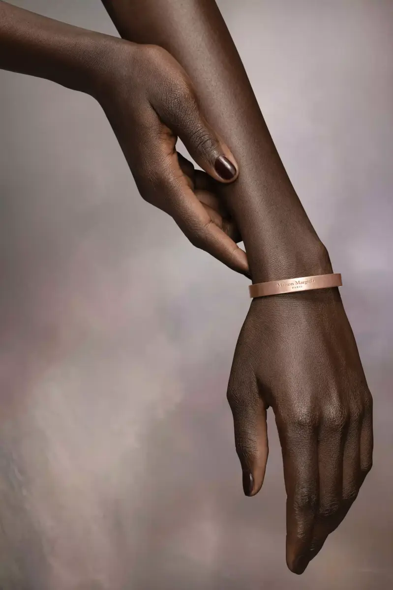 The 8mm cuff with yellow gold plating, with an engraved Maison Margiela logo.