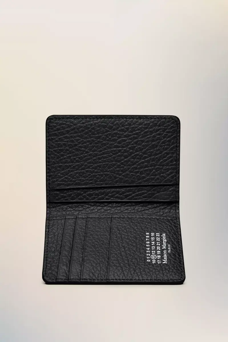 With multiple card slots and the logo inside, the cardholder is crafted from embossed grainy leather. Maison Margiela’s signature, the four stitches, appear on the back; the opposite of a label.