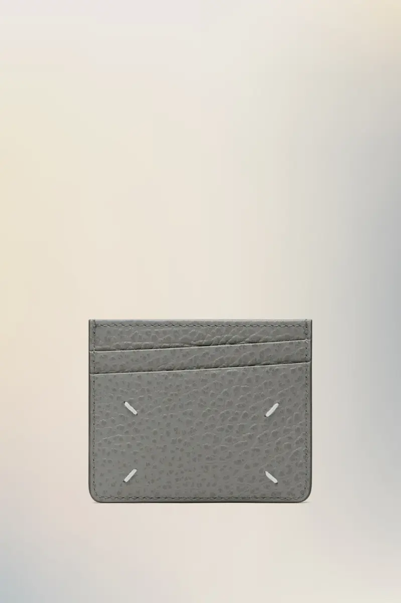 The cardholder comes in embossed grainy leather with five card slots and a middle section with the numeric logo inside. Maison Margiela’s signature, the four stitches, appear on the back; the opposite of a label.