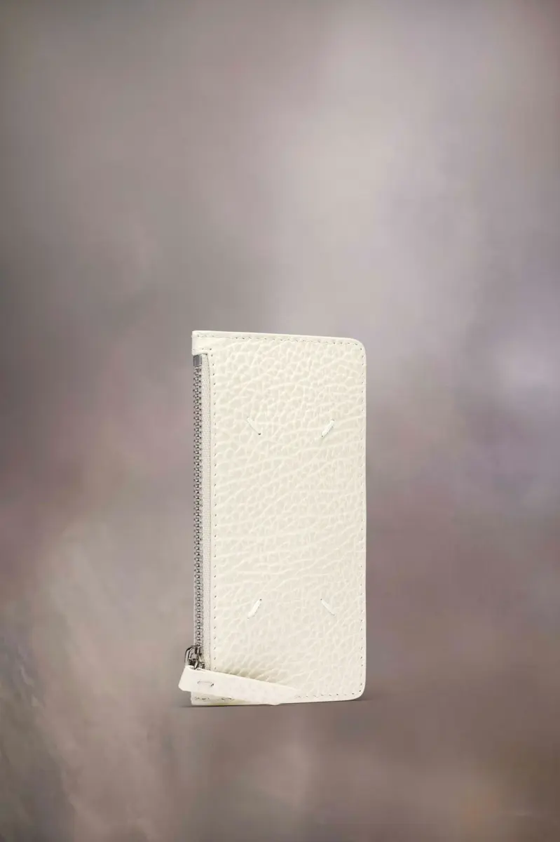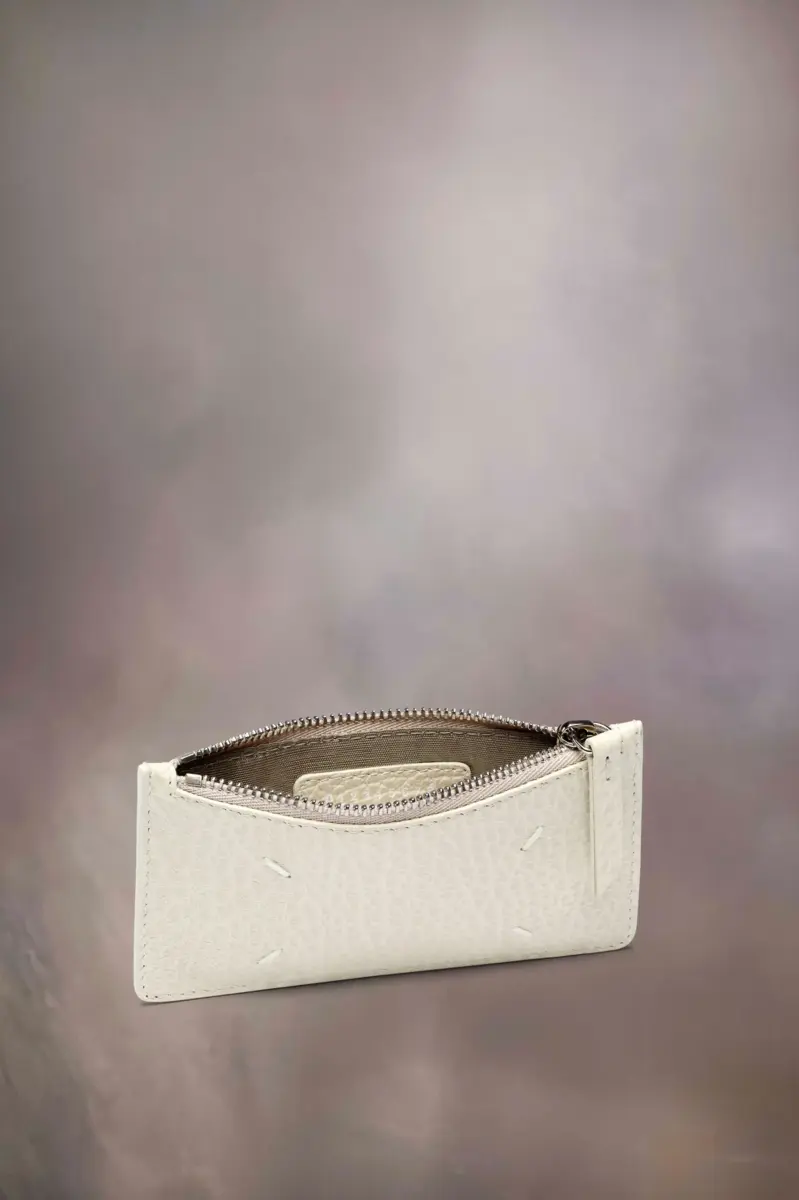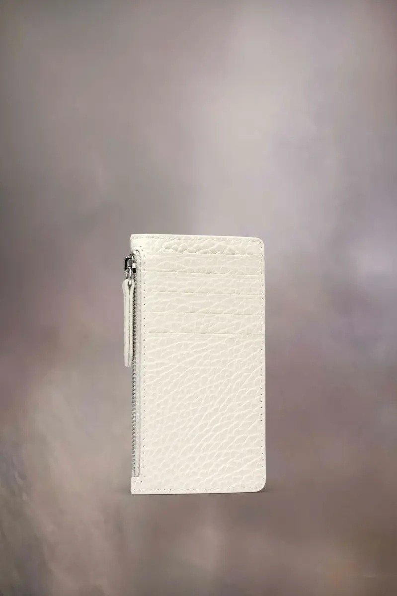 Crafted from embossed grainy leather, the cardholder wallet has a zipped section for coins and five card holders. The numeric logo appears inside. Maison Margiela’s signature, the four stitches, appear at the back; the opposite of a label.