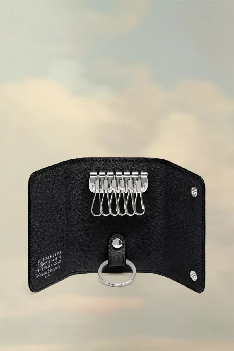 Crafted from embossed grainy leather, the key holder features a keyring and six hooks, with two snap button closures and inner numeric logo. Maison Margiela’s signature, the four stitches, appear at the back; the opposite of a label.