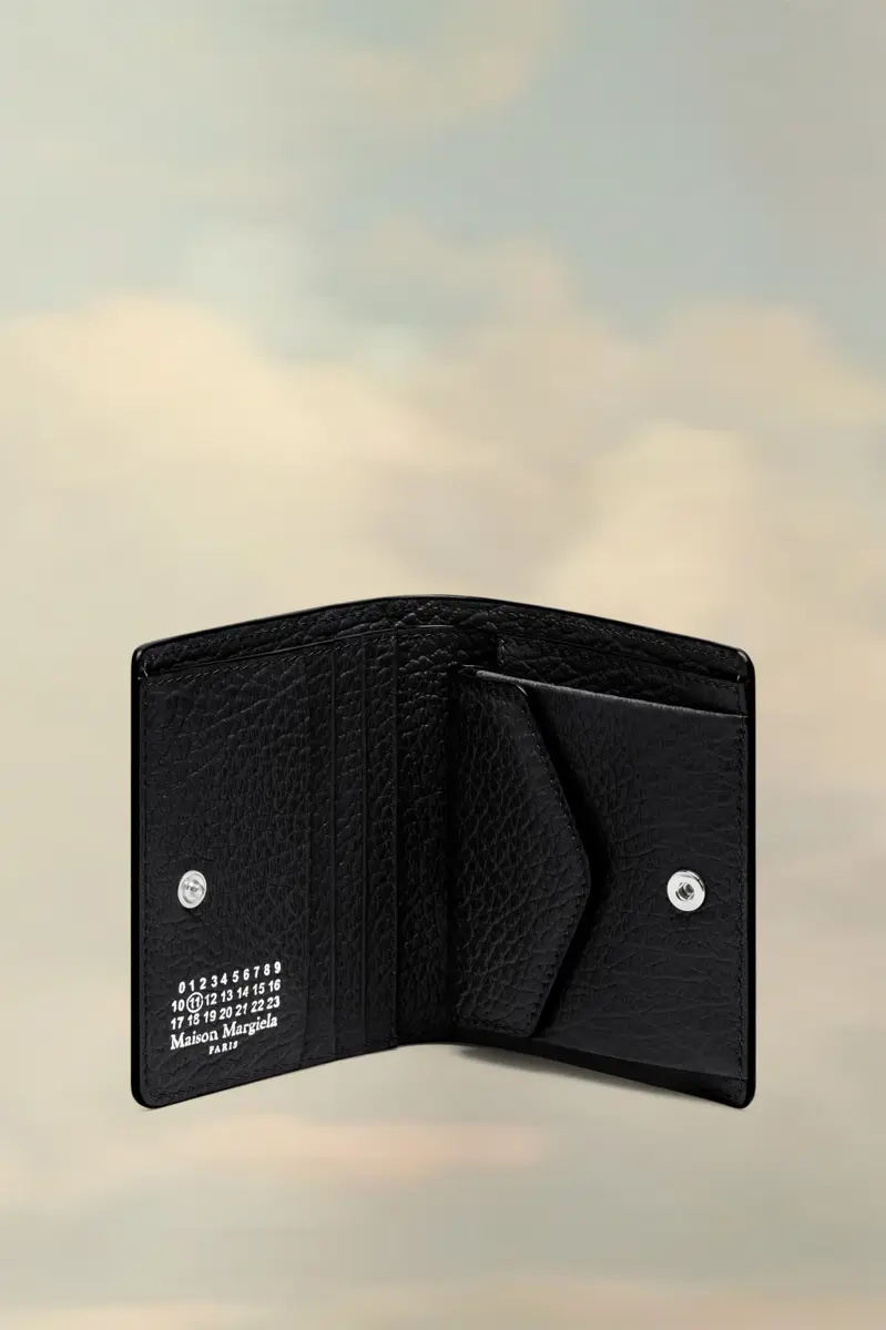 Crafted from embossed grainy leather, the cardholder has an inner envelope pocket and numeric logo with four card holders. Maison Margiela’s signature, the four stitches, appear at the back; the opposite of a label.