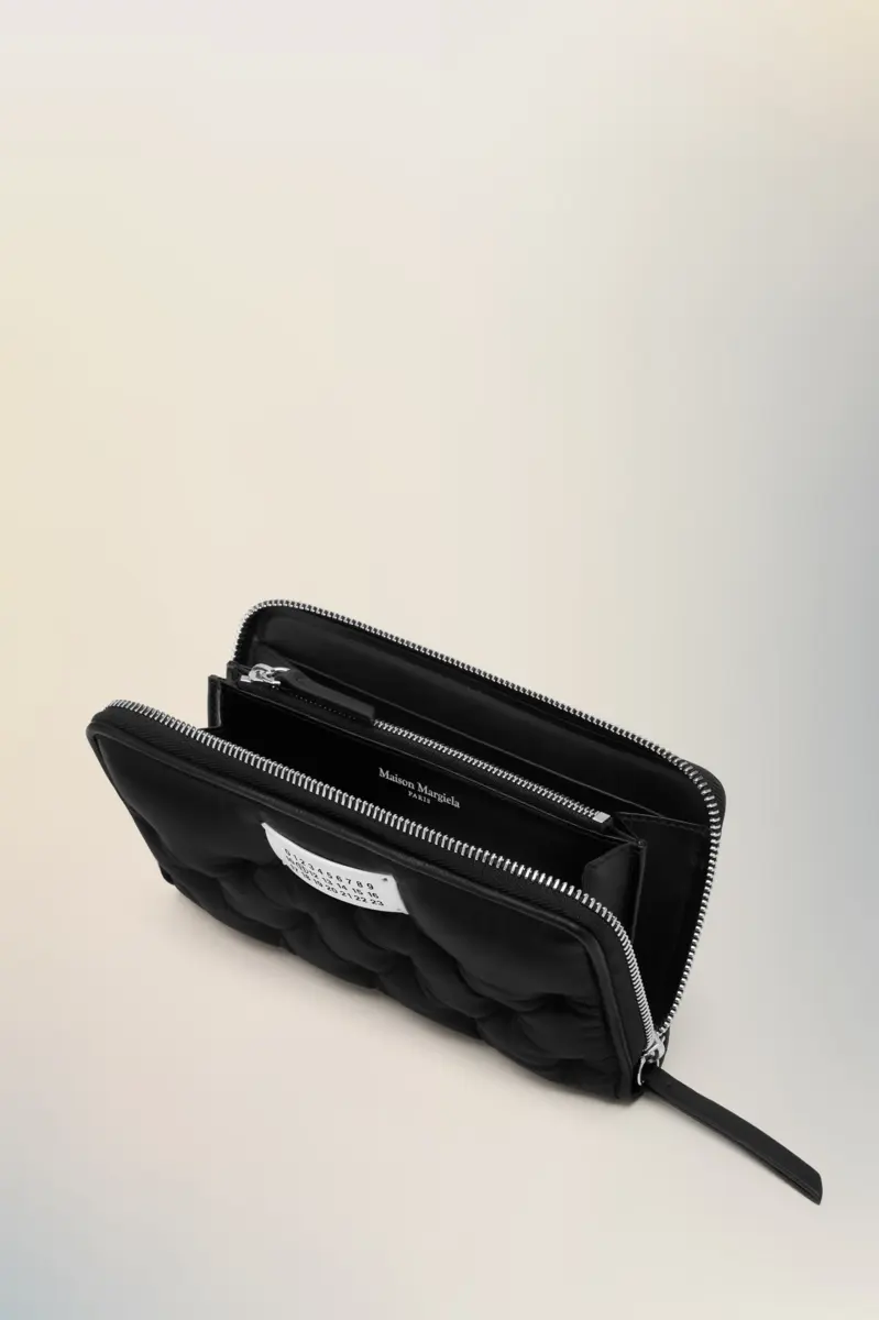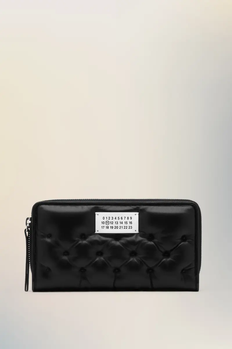Constructed in embroidered quilted nappa leather, the Glam Slam wallet recalls the notion of unconscious glamour and evokes its association to ease, following the study into dressing and travelling rituals worldwide. The Glam Slam debuted in the SS18 show and has a quilted design which mimics matelassé – the style of hand-stitched quilts created in Marseilles, France. The zip-around design features supple rounded edges, zipped inner section and the Maison’s numeric logo tab.
