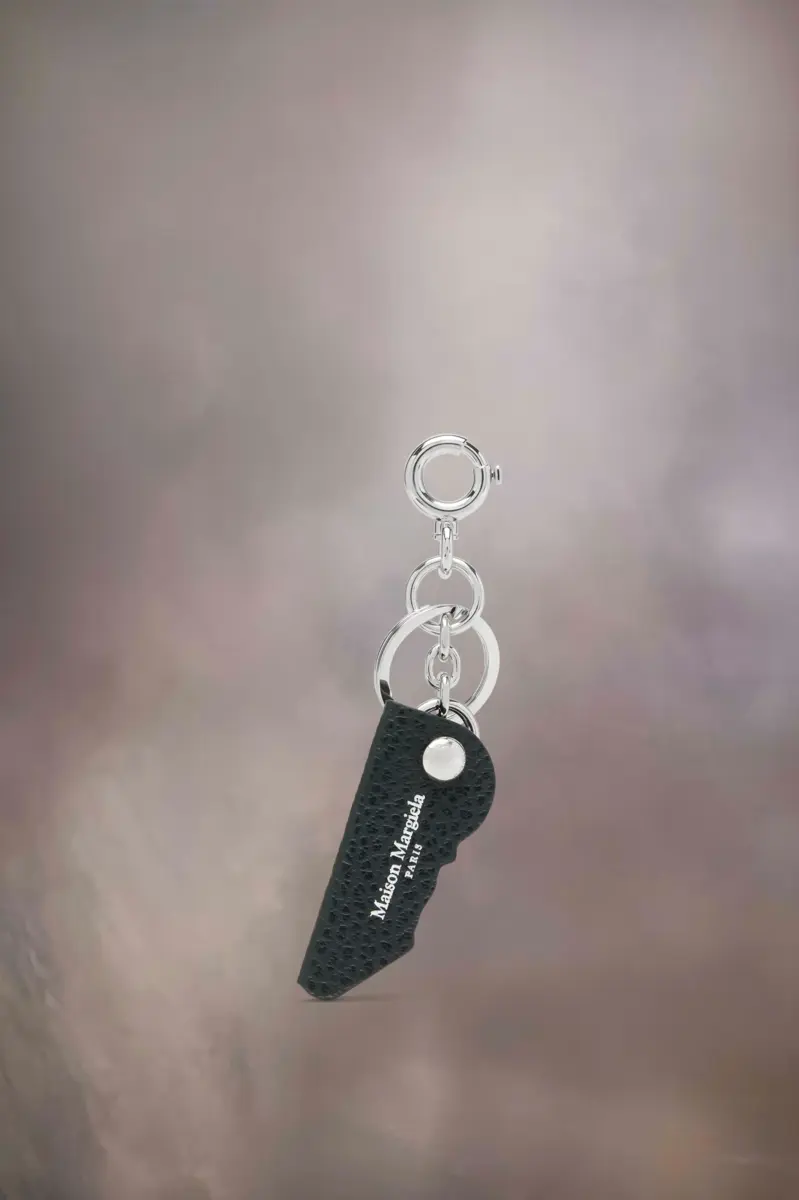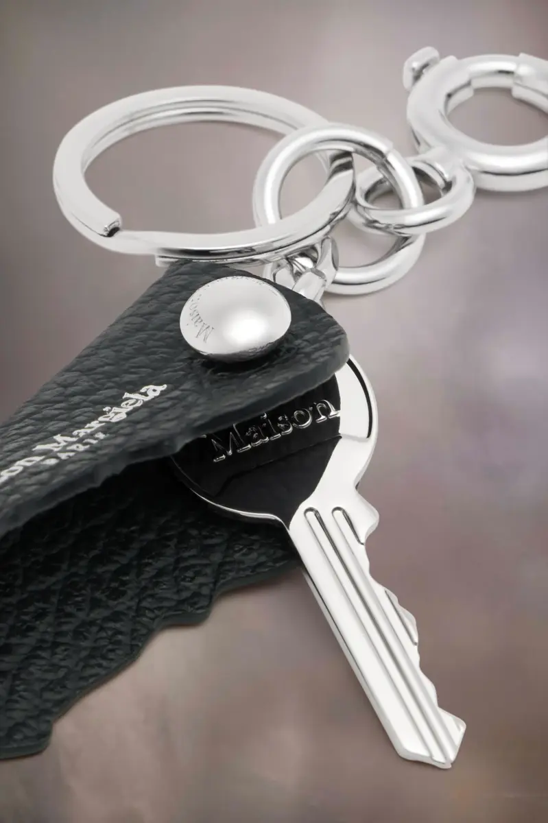 Crafted from embossed grainy leather, the keyring features a secure clasp closure and the Maison Margiela logo on the front. The stud is also adorned with the logo.