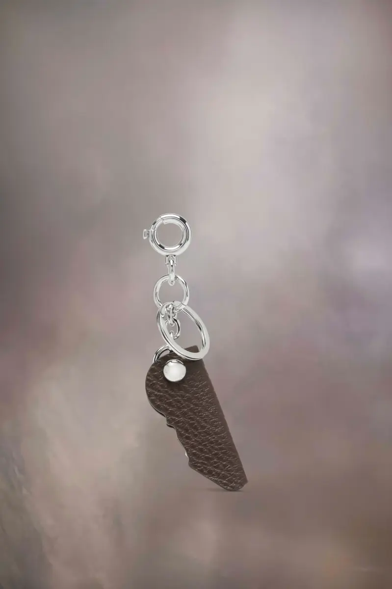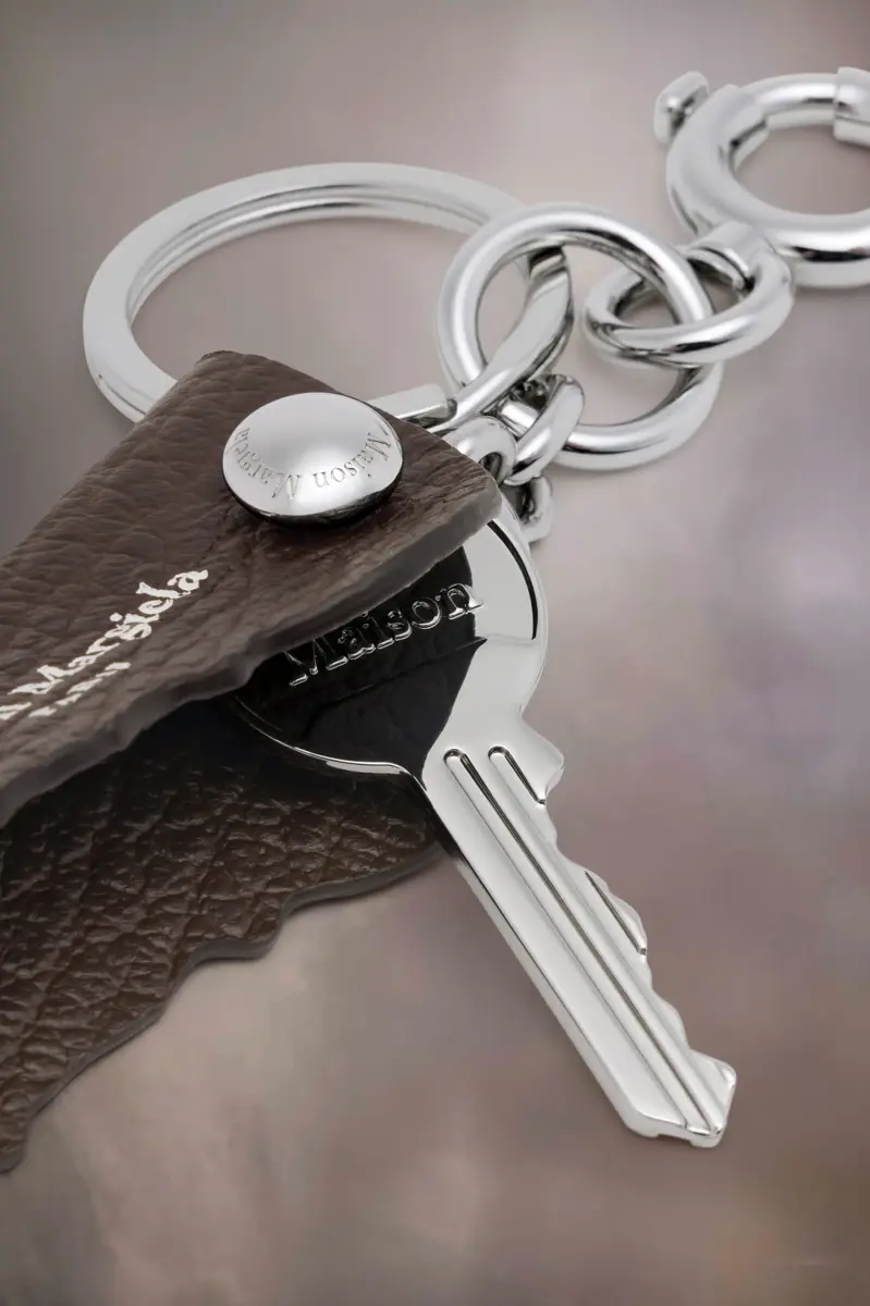 Crafted from embossed grainy leather, the keyring features a secure clasp closure and the Maison Margiela logo on the front. The stud is also adorned with the logo.