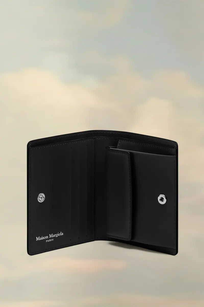 With an inner logo, the grainy leather cardholder has eight card holders and sections for notes.