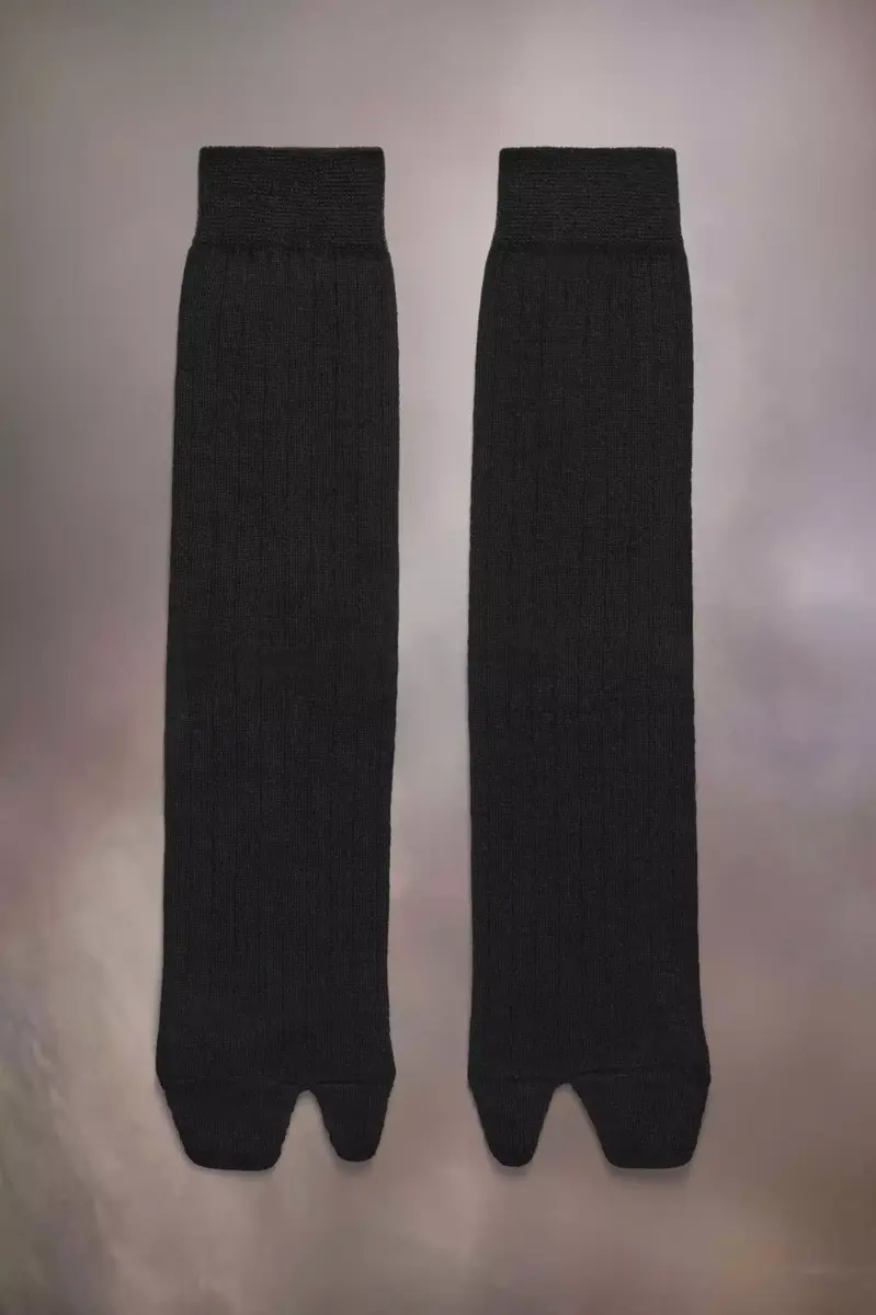 Ankle socks in a wool-blend with the Tabi split-toe shape. The design presents a traditional 15th century Japanese sock inspiration, bearing the same name – launched for the Maison’s debut collection in 1989. It captures the avant-garde and insubordinate spirit of the Maison and exists as a heritage classic, continually explored through each collection. The Maison’s signature stitching adorns the back. Gauge 18. Made in Italy.