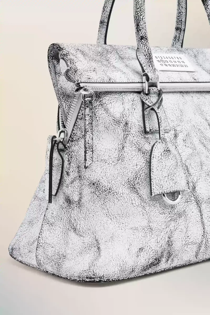 This 5AC Loved to Death medium is crafted in leather with a crackled treatment – a layered finish emblematic of the Maison. A matte coating is applied by hand over soft calf leather, designed to flake with time and reveal the beauty of wear and imperfection. The iconic 5AC line takes its name from the French word ‘sac’ (bag). It explores the Maison’s Anonymity of the Lining concept. Accented with the Maison’s numeric artwork and four stitches – the opposite of a label.