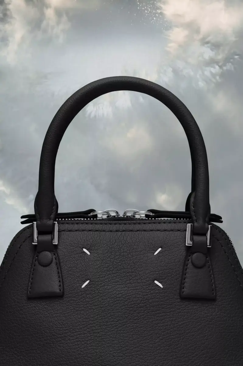 The 5AC classique micro, crafted from goat leather, is accented with the logo label on the inner. The iconic 5AC line takes its name from the French word ‘sac’ (bag). It explores the Maison’s Anonymity of the lining concept. The bag’s metal rivets are covered in leather by hand, with the metal visible only where needed, for a clean aspect. Artisanal details include the bag’s exposed edges hand-painted in tone with the leather.