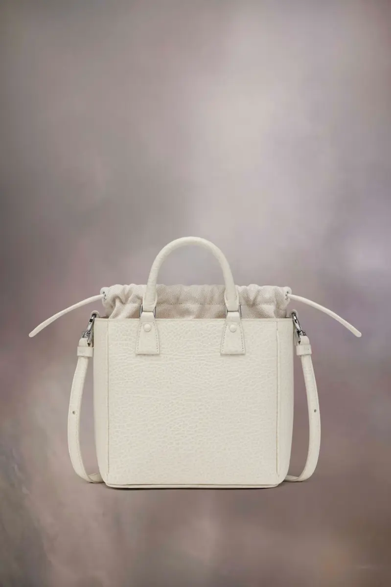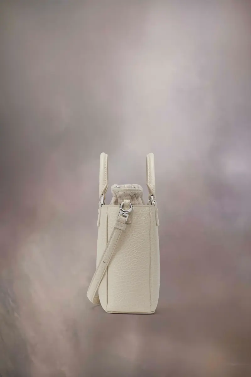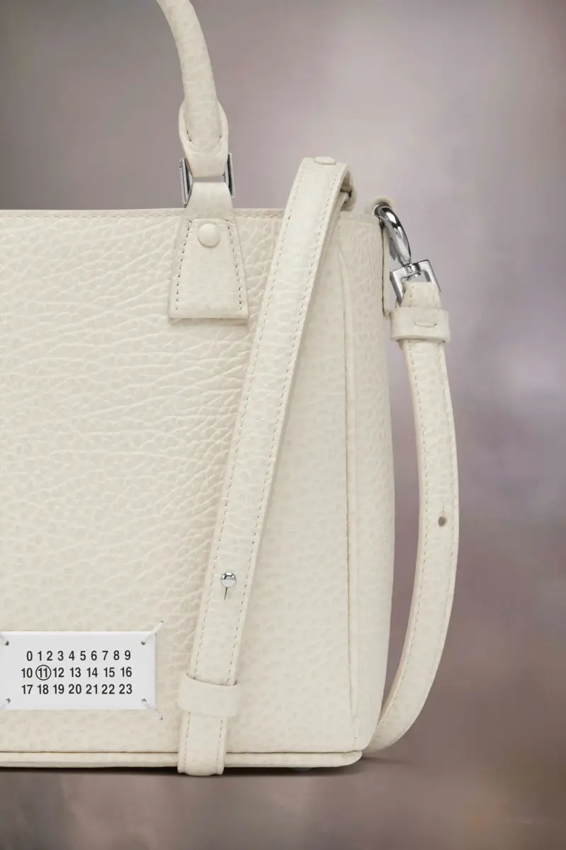 The 5AC tote vertica, crafted from grainy leather, is accented with the logo label. The iconic 5AC line takes its name from the French word ‘sac’ (bag). It explores the Maison’s Anonymity of the lining concept. The bag’s metal rivets are covered in leather by hand, with the metal visible only where needed, for a clean aspect. Artisanal details include the bag’s exposed edges hand-painted in tone with the leather.