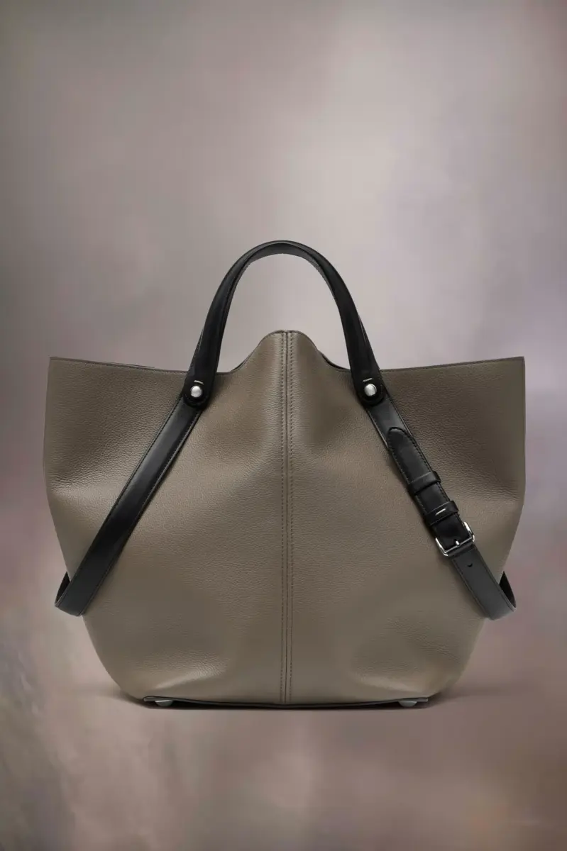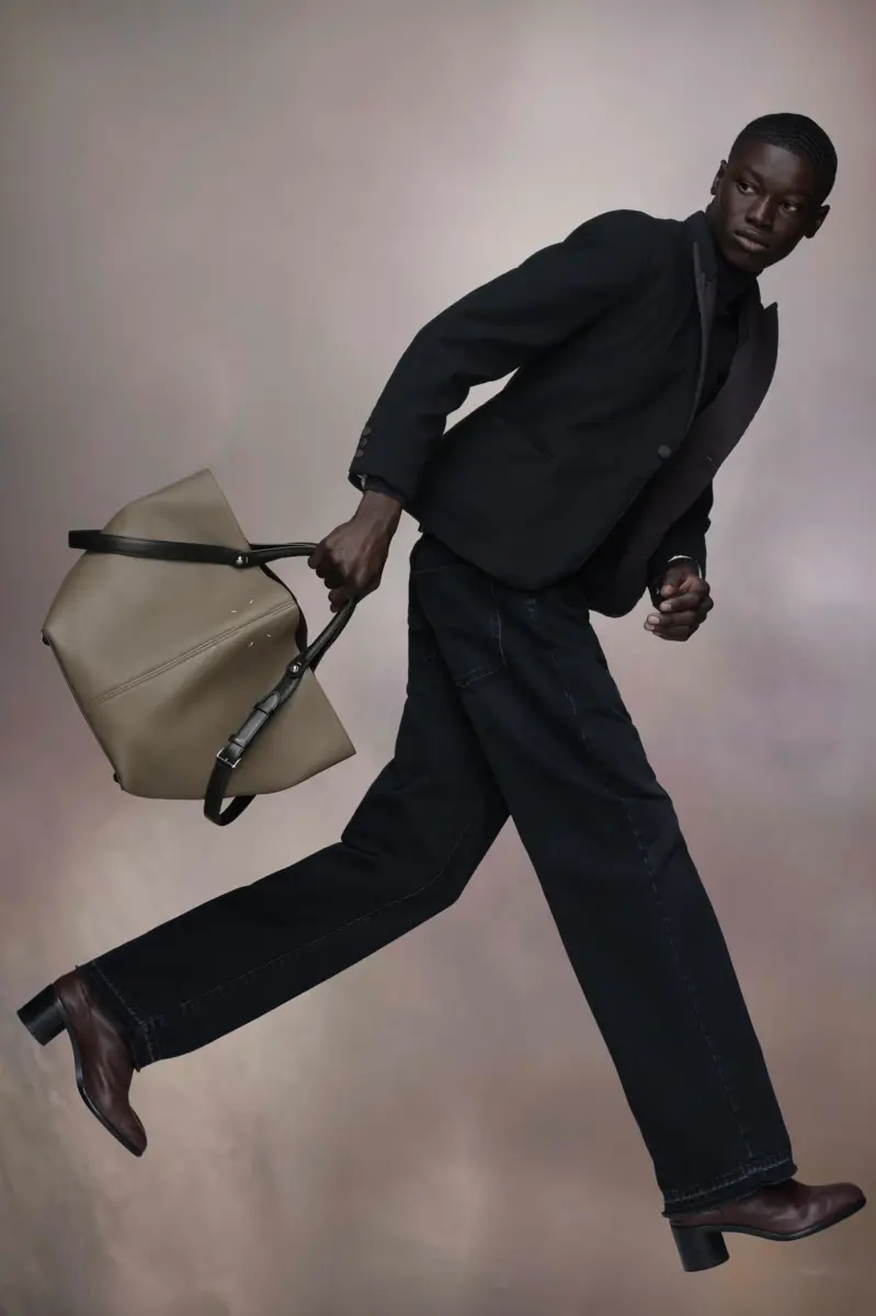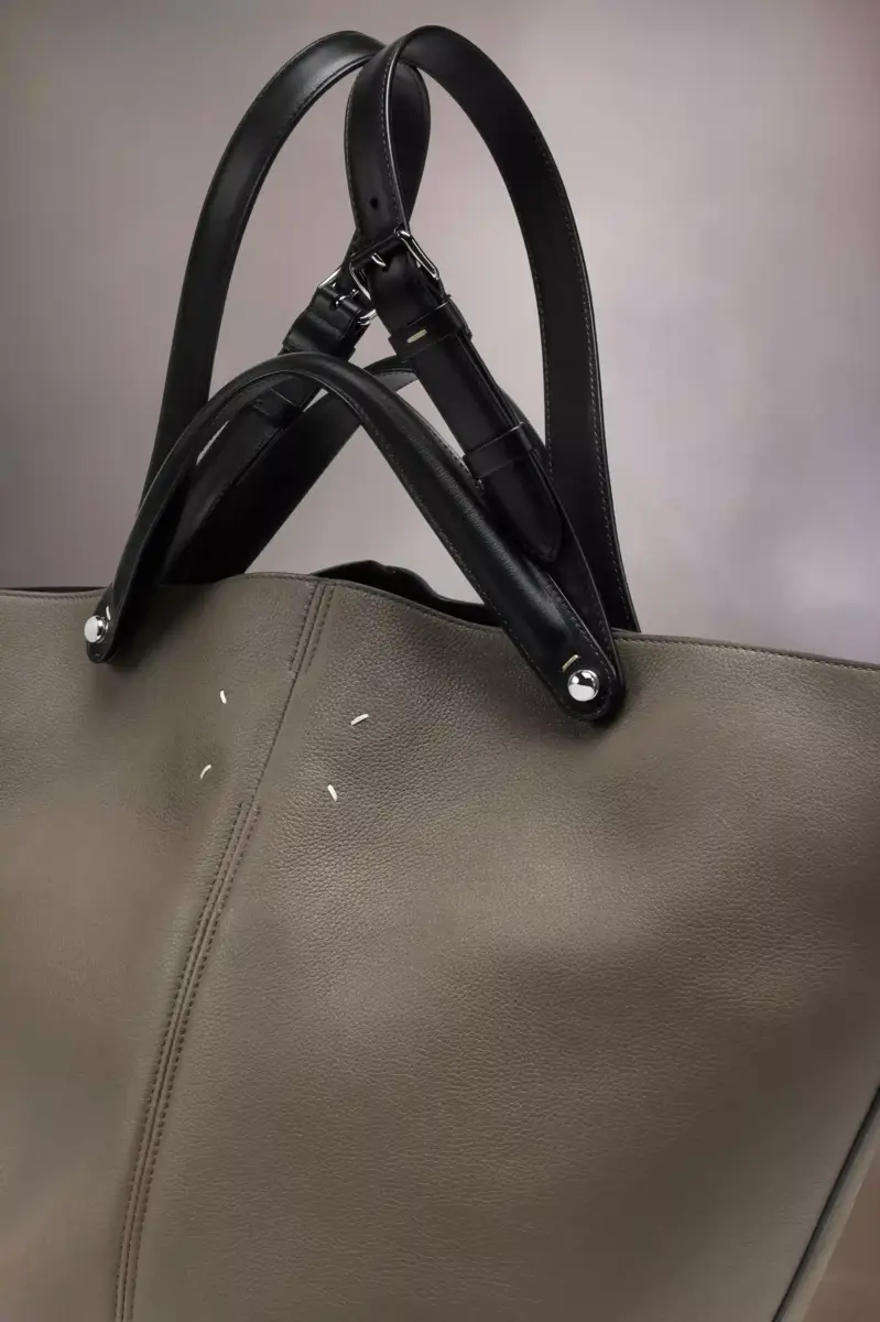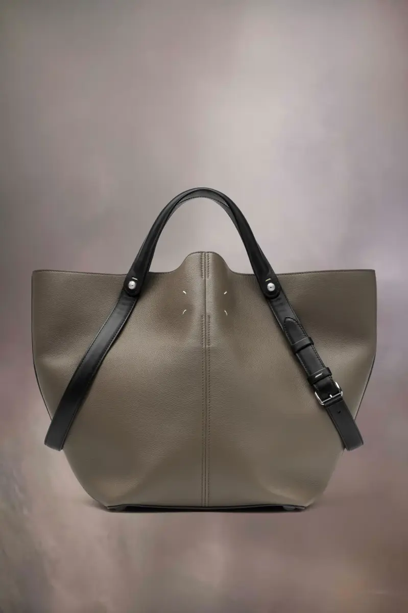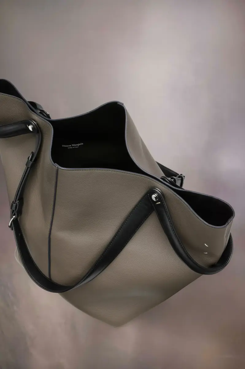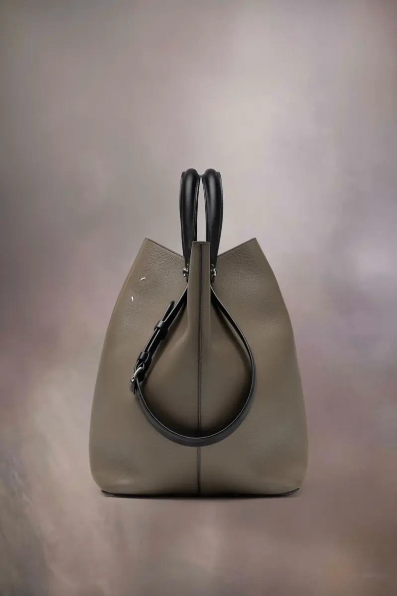 The Maison launches the Dress-age handbag for SS25, crafted from soft pebbled calfskin. With an equestrian spin, the large handbag features classic leatherwork and refined lines, combining unconscious glamour with gestural design. It follows a trapezoid shape with contrast dual-wear strap detail. The studded base allows the bag to stand, and the inner is adorned with the logo. Maison Margiela’s signature, the four stitches, appear at the back; the opposite of a label.