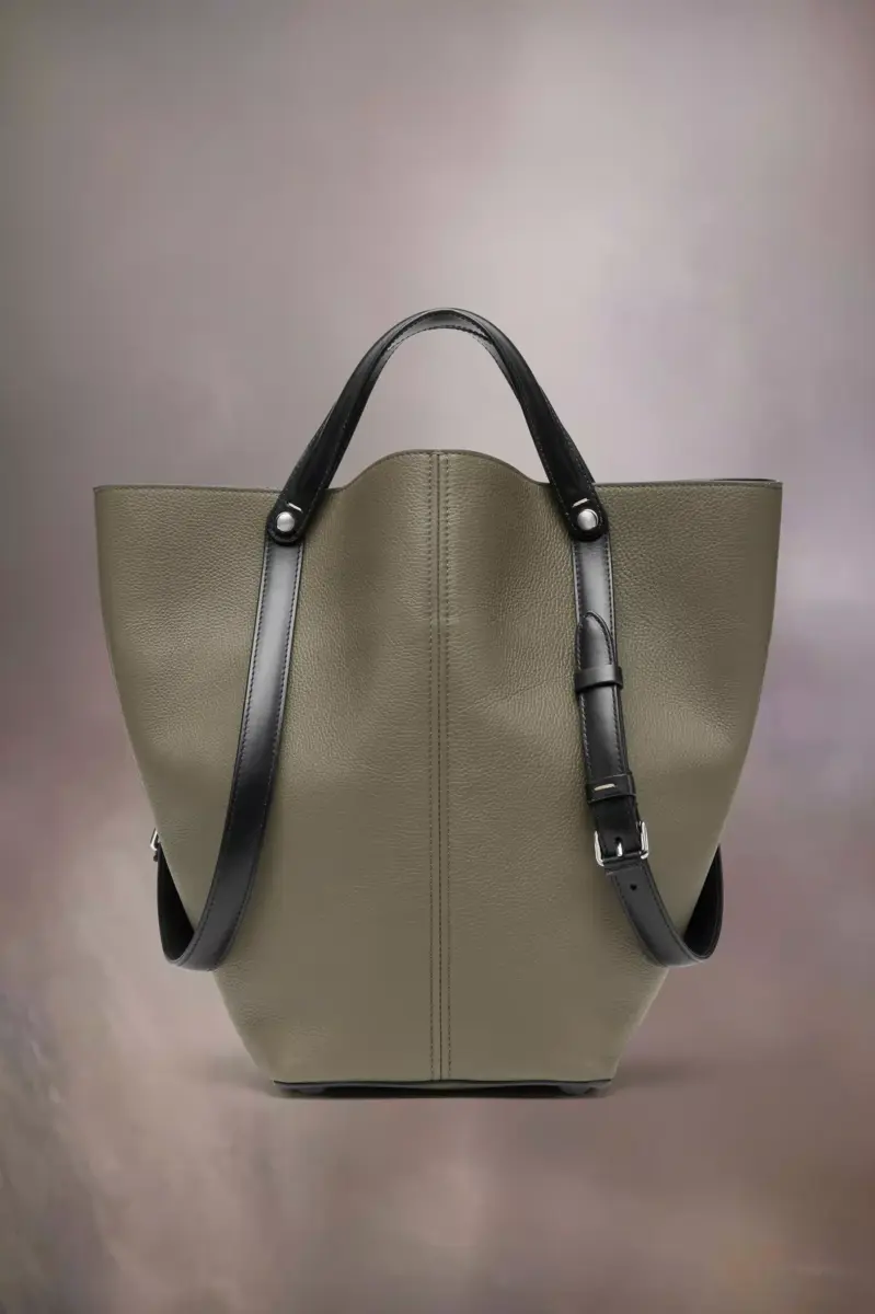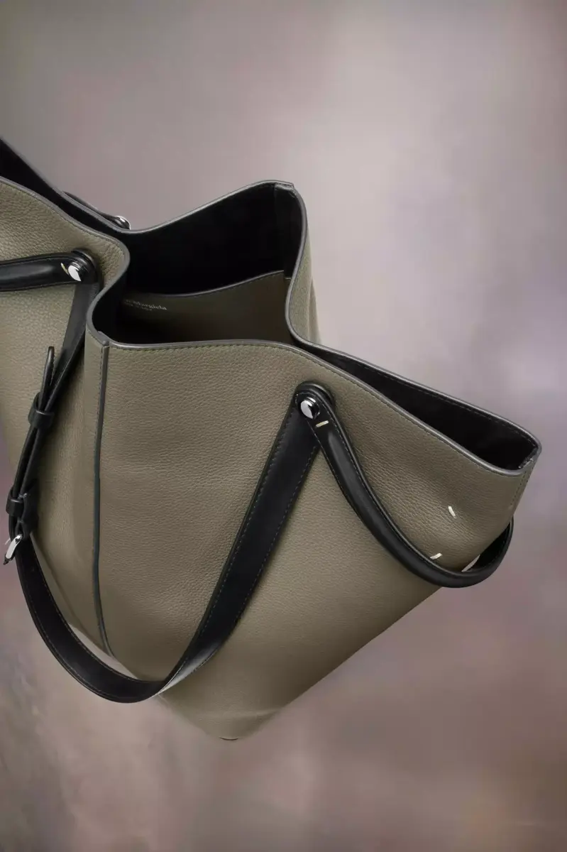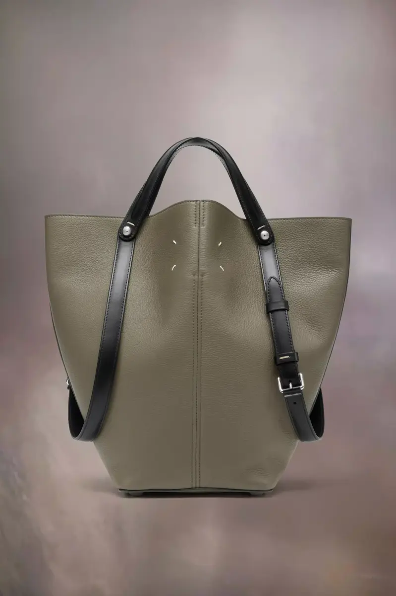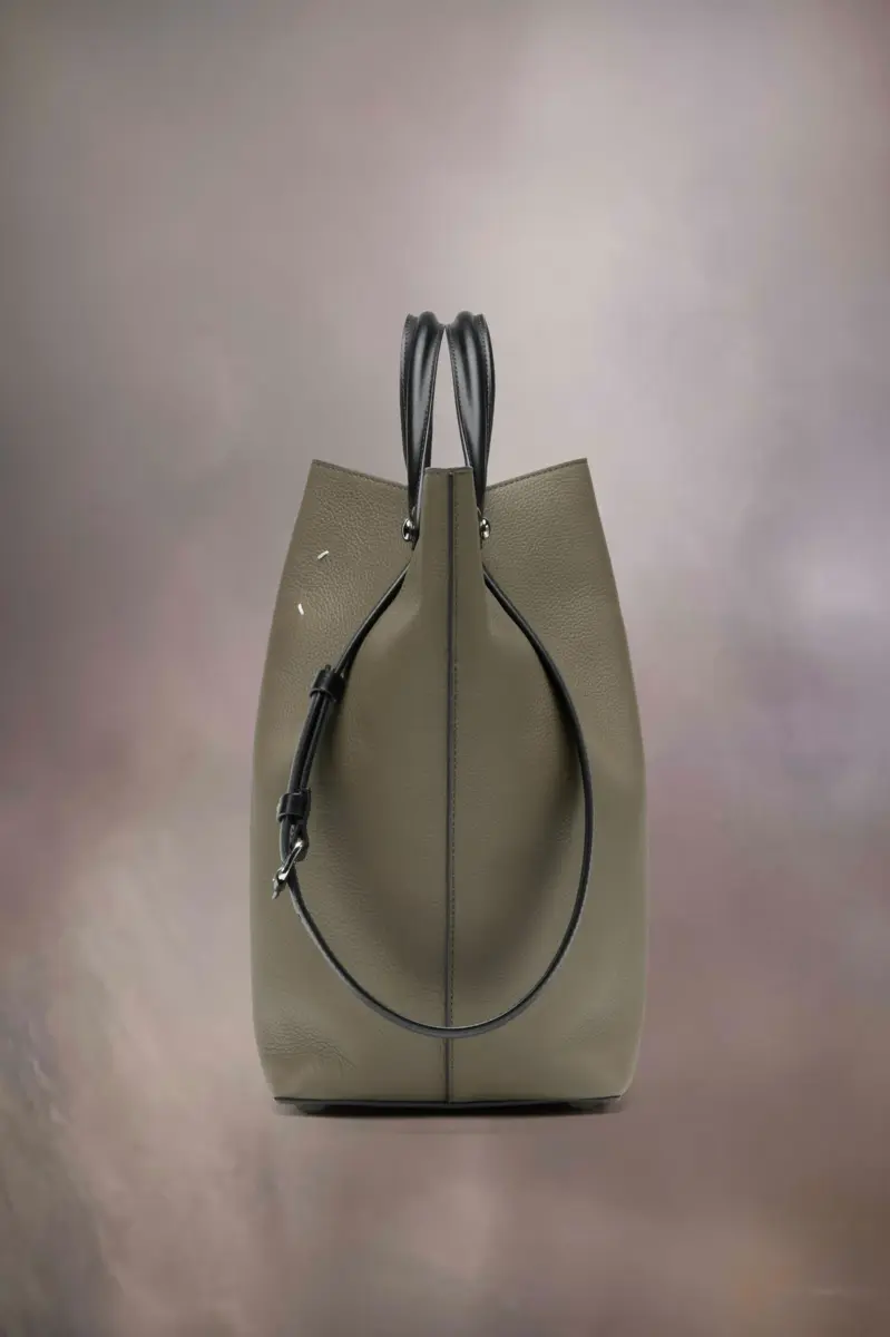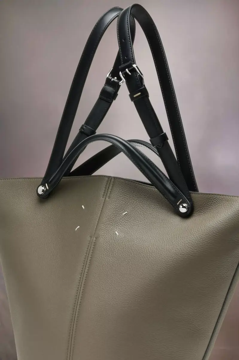 The Maison launches the Dress-age handbag for SS25, crafted from soft pebbled calfskin. With an equestrian spin, the medium handbag features classic leatherwork and refined lines, combining unconscious glamour with gestural design. It follows a trapezoid shape with contrast dual-wear strap detail. The studded base allows the bag to stand, and the inner is adorned with the logo. Maison Margiela’s signature, the four stitches, appear at the back; the opposite of a label.