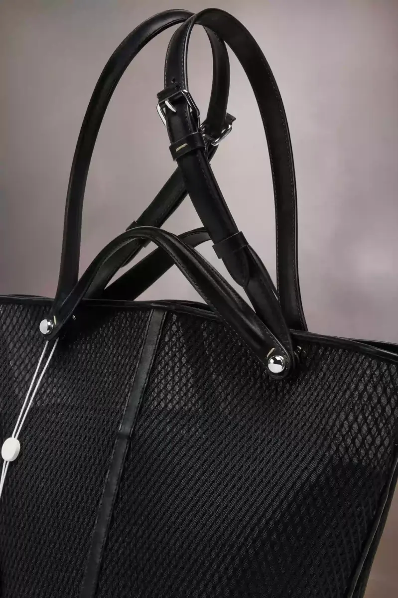 The Maison launches the Dress-age handbag for SS25, crafted from calf leather with a net overlay. With an equestrian spin, the medium handbag is inspired by the regalities of dressage horse riding. It follows a trapezoid design with short strap detail, which can be worn as top handles or pushed down to mimic stirrups with the longer, adjustable buckled straps worn over the shoulder. The base is studded, allowing the bag to stand, and the inner is accented with the logo. It features a logo identity tag with contrast string. Maison Margiela’s signature, the four stitches, appear at the side; the opposite of a label.