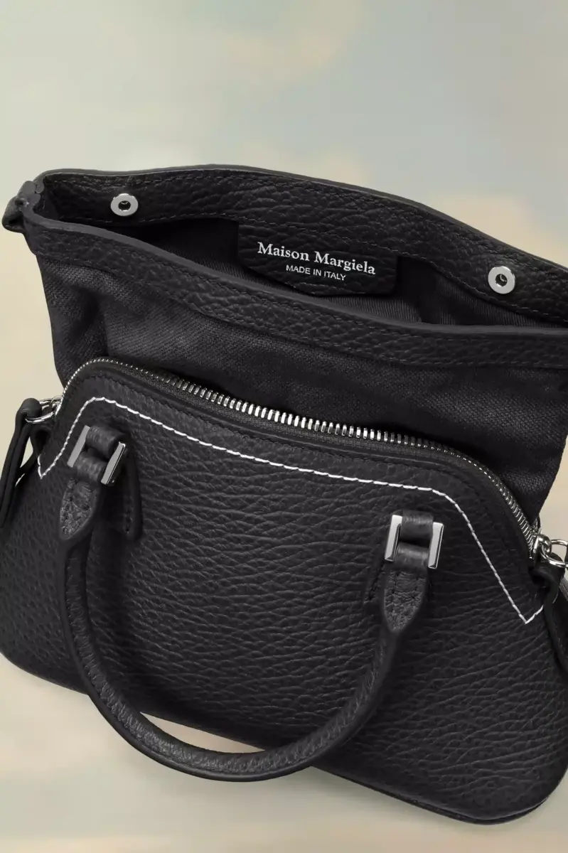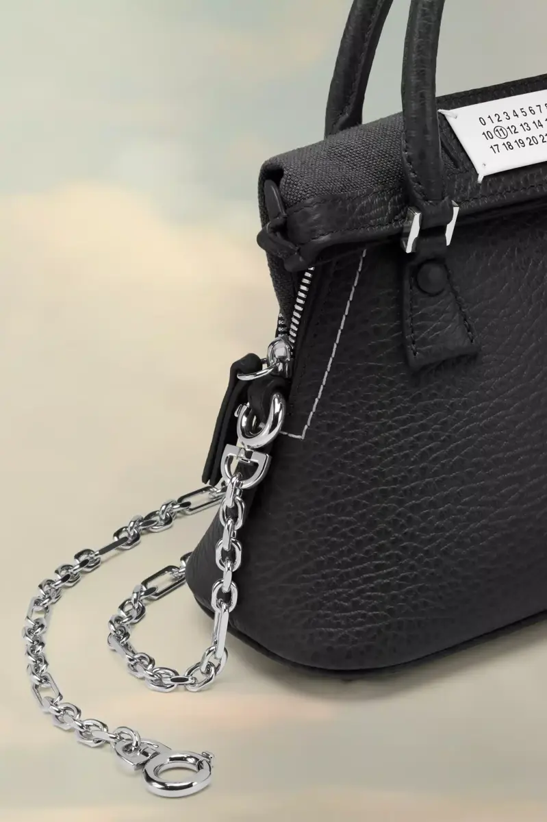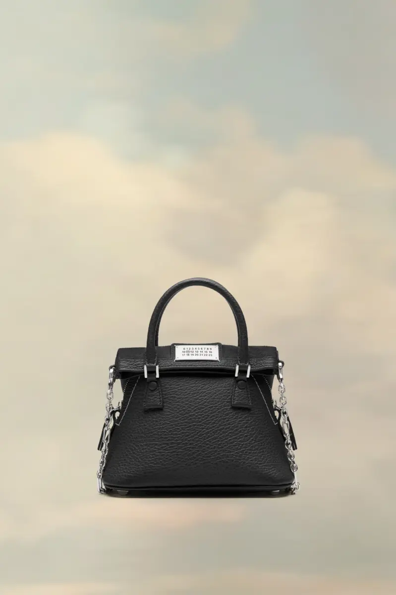 The 5AC classique micro, crafted from grainy leather, features top handles and a chain shoulder strap. It is accented with the logo label at the front. The iconic 5AC line takes its name from the French word ‘sac’ (bag). It explores the Maison’s Anonymity of the lining concept. The bag’s metal rivets are covered in leather by hand, with the metal visible only where needed, for a clean aspect. Artisanal details include the bag’s exposed edges hand-painted in tone with the leather.