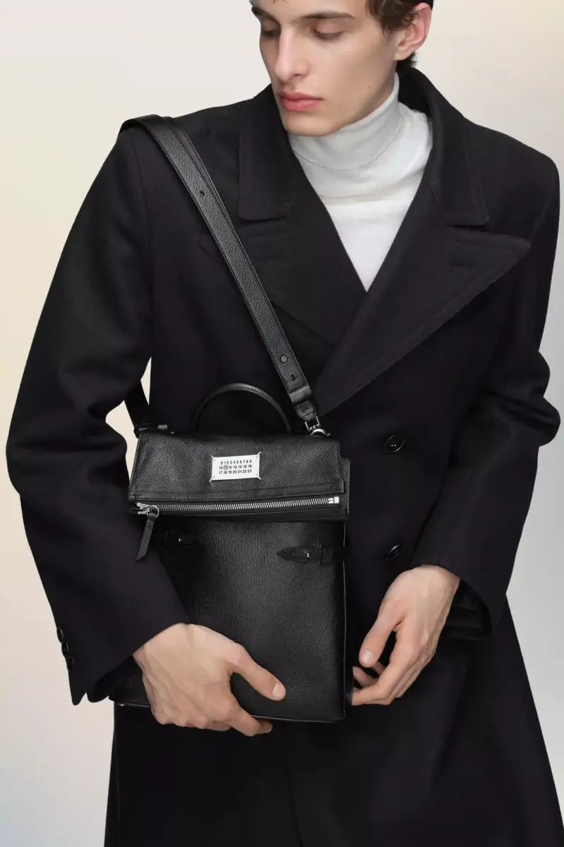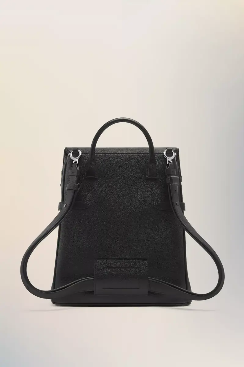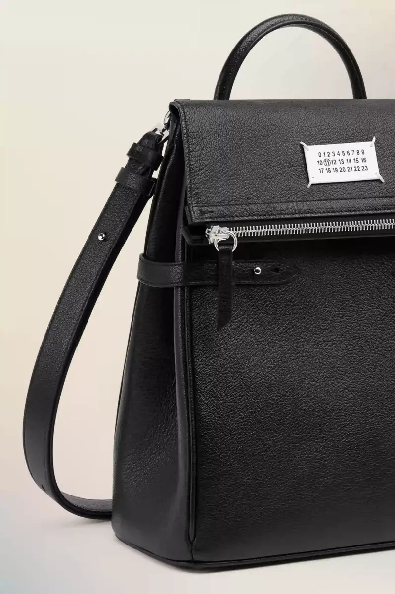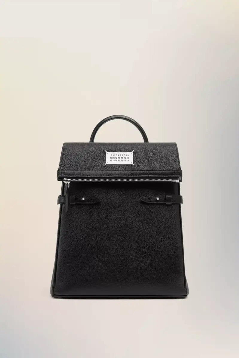 This 5AC backpack combines function with refined craftsmanship, constructed in full-grain leather with a boxy silhouette and polished silver hardware. The straps can be removed for multiwear versatility, adapting the piece to different carrying styles. The front bears the Maison’s signature numeric label, while a cotton-lined interior reflects its Anonymity of the lining ethos.