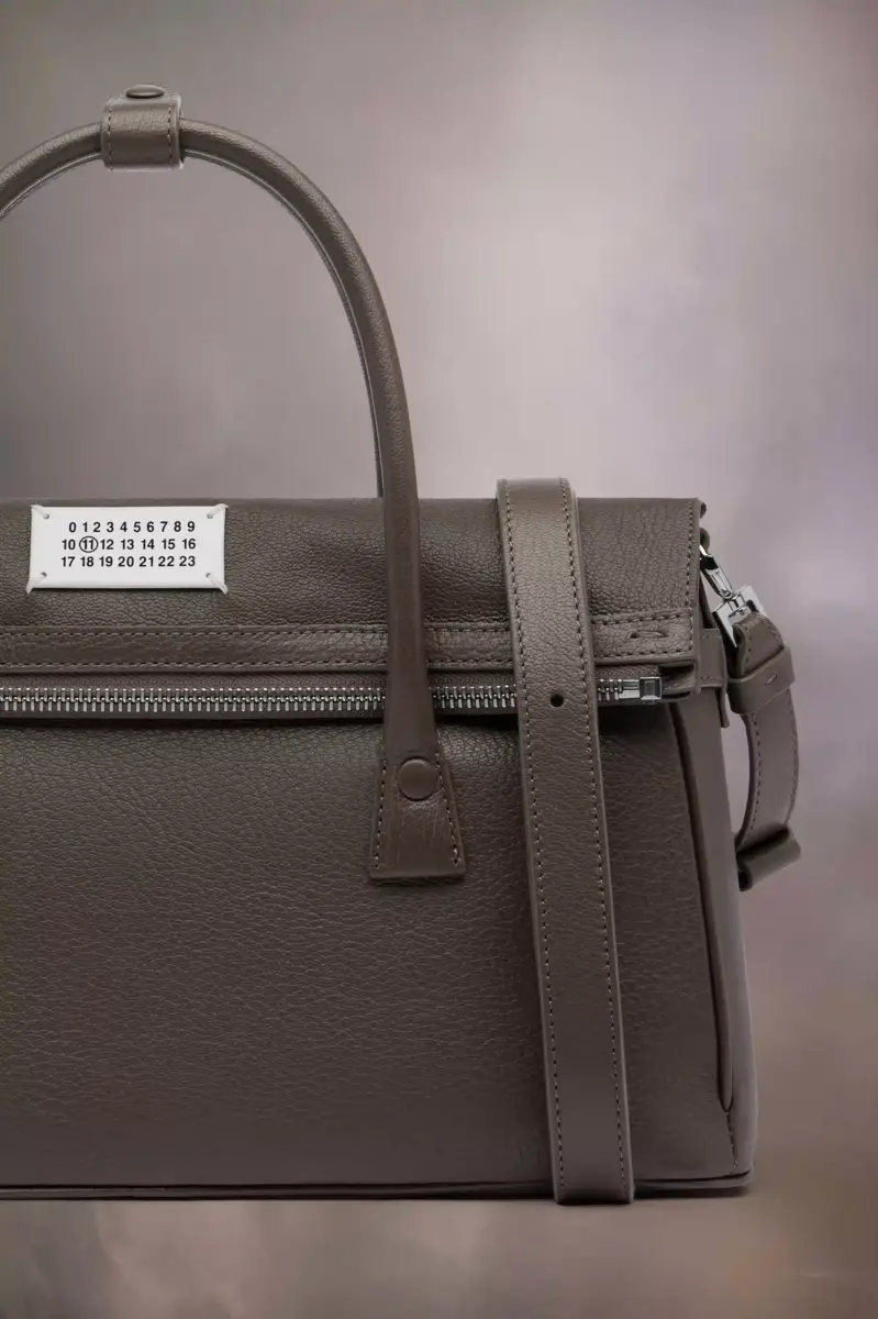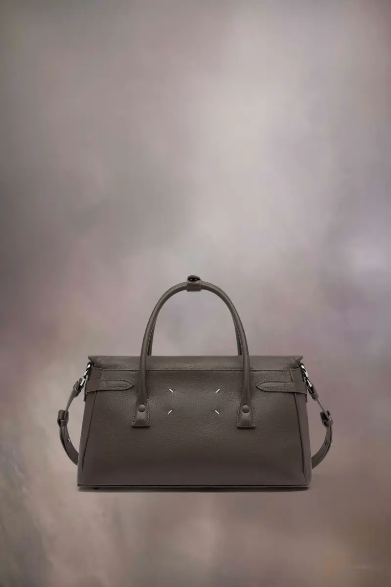 The 5AC East West takes Maison Margiela’s signature 5AC handbag and infuses an Informal Formality mood. Crafted from goat leather, it features top handles and a fold-over design. It is accented with the logo label at the front. The iconic 5AC line takes its name from the French word ‘sac’ (bag). The East West variation is the latest addition to the 5AC family of subverted modern classics, revisited in an elongated size with more volume. Modelled on a men’s briefcase, with a horizontal shape that inspired its name, the bag can be worn by hand, over the shoulder or crossbody. The style continues to explore the Maison’s Anonymity of the lining concept to reveal its internal structure.