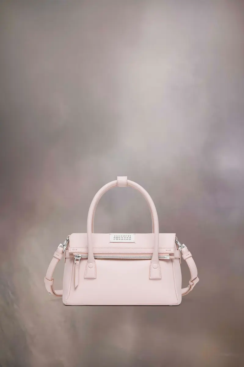 The 5AC East West, crafted from goat leather, takes Maison Margiela’s signature 5AC handbag and infuses an Informal Formality mood. It is accented with the logo label at the front. The iconic 5AC line takes its name from the French word ‘sac’ (bag). The East West variation is the latest addition of subverted modern classics, revisited in an elongated size with more volume. Modelled on a men’s briefcase, with a horizontal shape that inspired its name, the bag can be worn by hand, over the shoulder or crossbody. The style continues to explore the Maison’s Anonymity of the lining concept to reveal its internal structure.