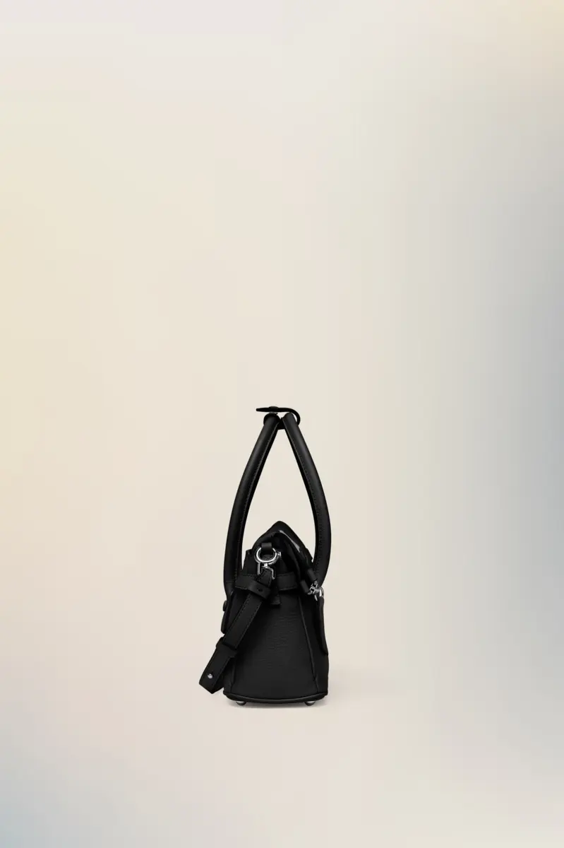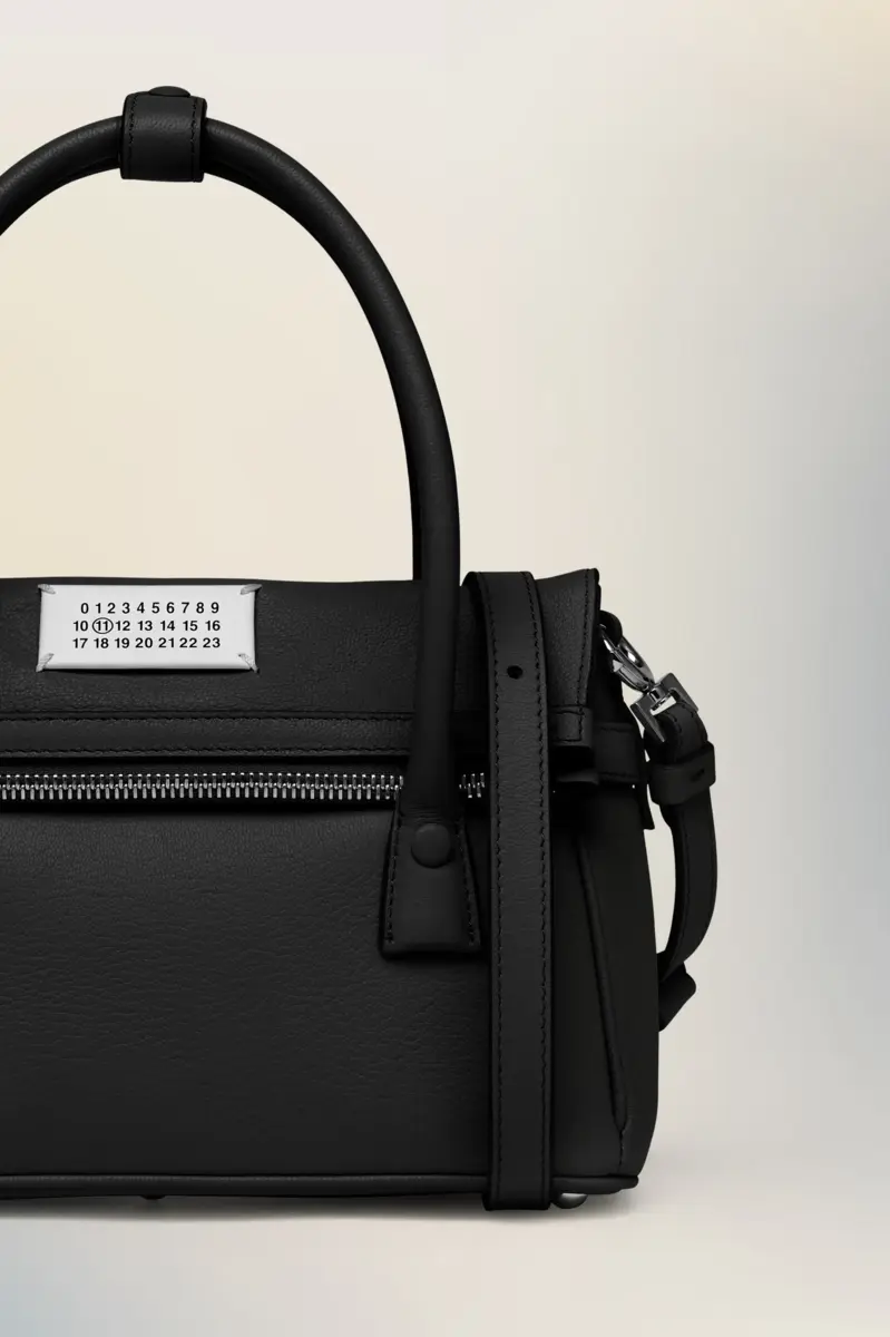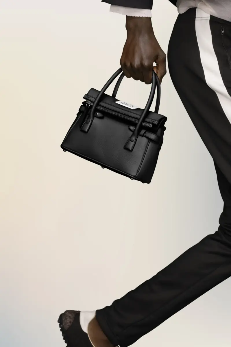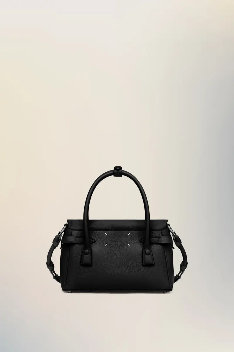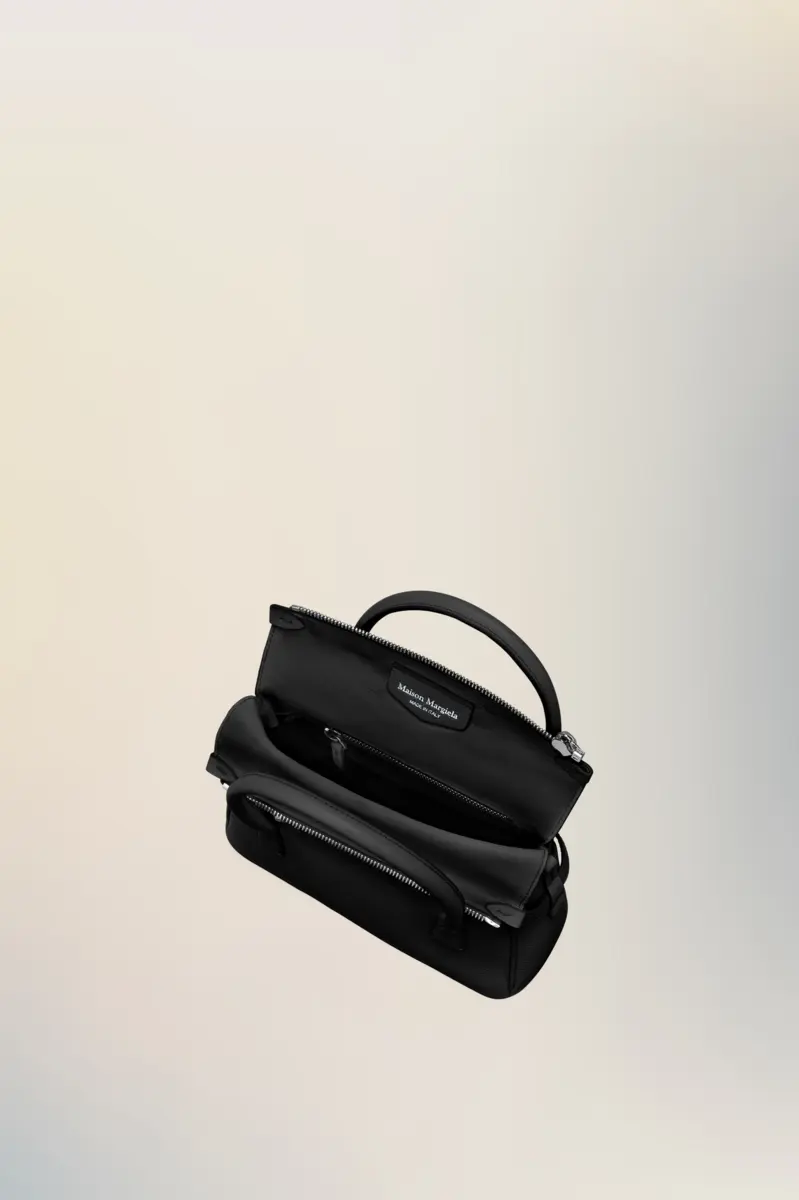The 5AC East West, crafted from goat leather, takes Maison Margiela’s signature 5AC handbag and infuses an Informal Formality mood. It is accented with the logo label at the front. The iconic 5AC line takes its name from the French word ‘sac’ (bag). The East West variation is the latest addition of subverted modern classics, revisited in an elongated size with more volume. Modelled on a men’s briefcase, with a horizontal shape that inspired its name, the bag can be worn by hand, over the shoulder or crossbody. The style continues to explore the Maison’s Anonymity of the lining concept to reveal its internal structure.