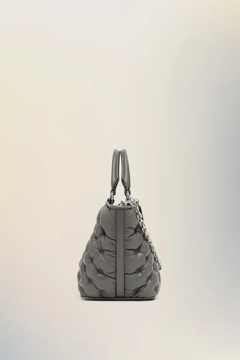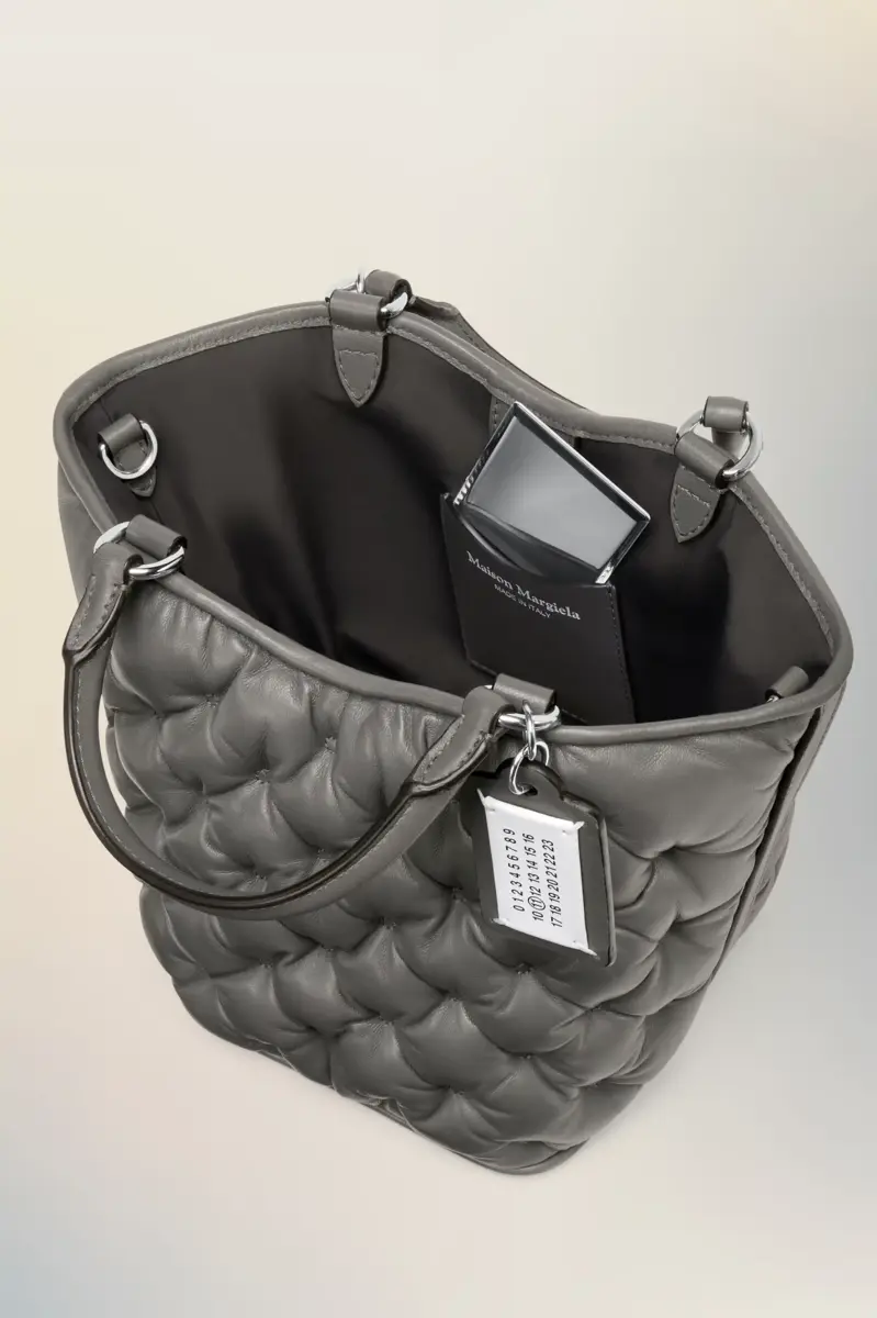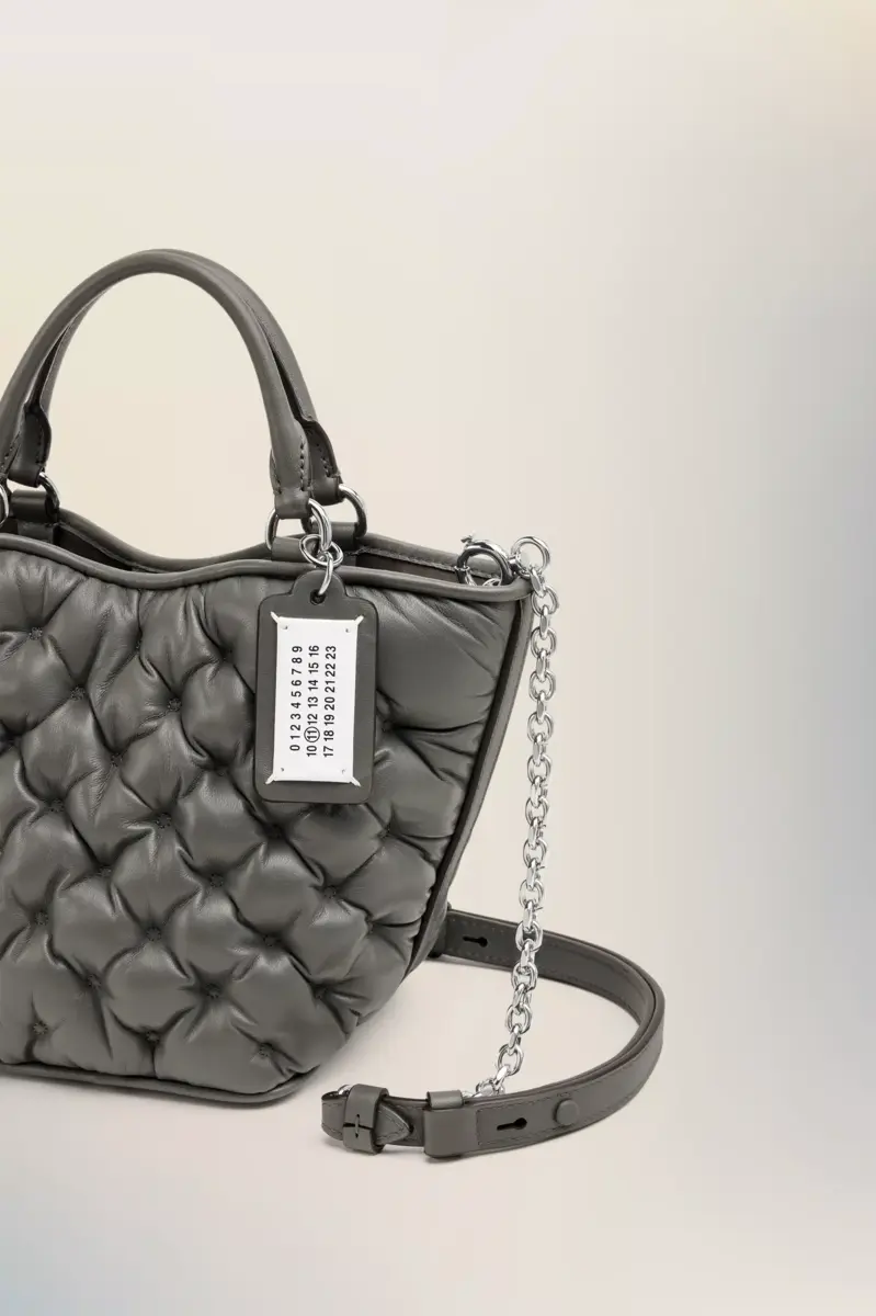 The Glam Slam embroidery tote mini is crafted with a quilted, padded body and silver-tone chain strap. Its distinctive texture mimics the traditional matelassé quilting of Marseilles – a key reference behind the line, which debuted in the SS18 collection. Reflecting the notion of unconscious glamour, the Glam Slam balances softness and structure with instinctive ease. Finished with the Maison’s numeric logo tag and a hidden pocket mirror for on-the-go elegance.