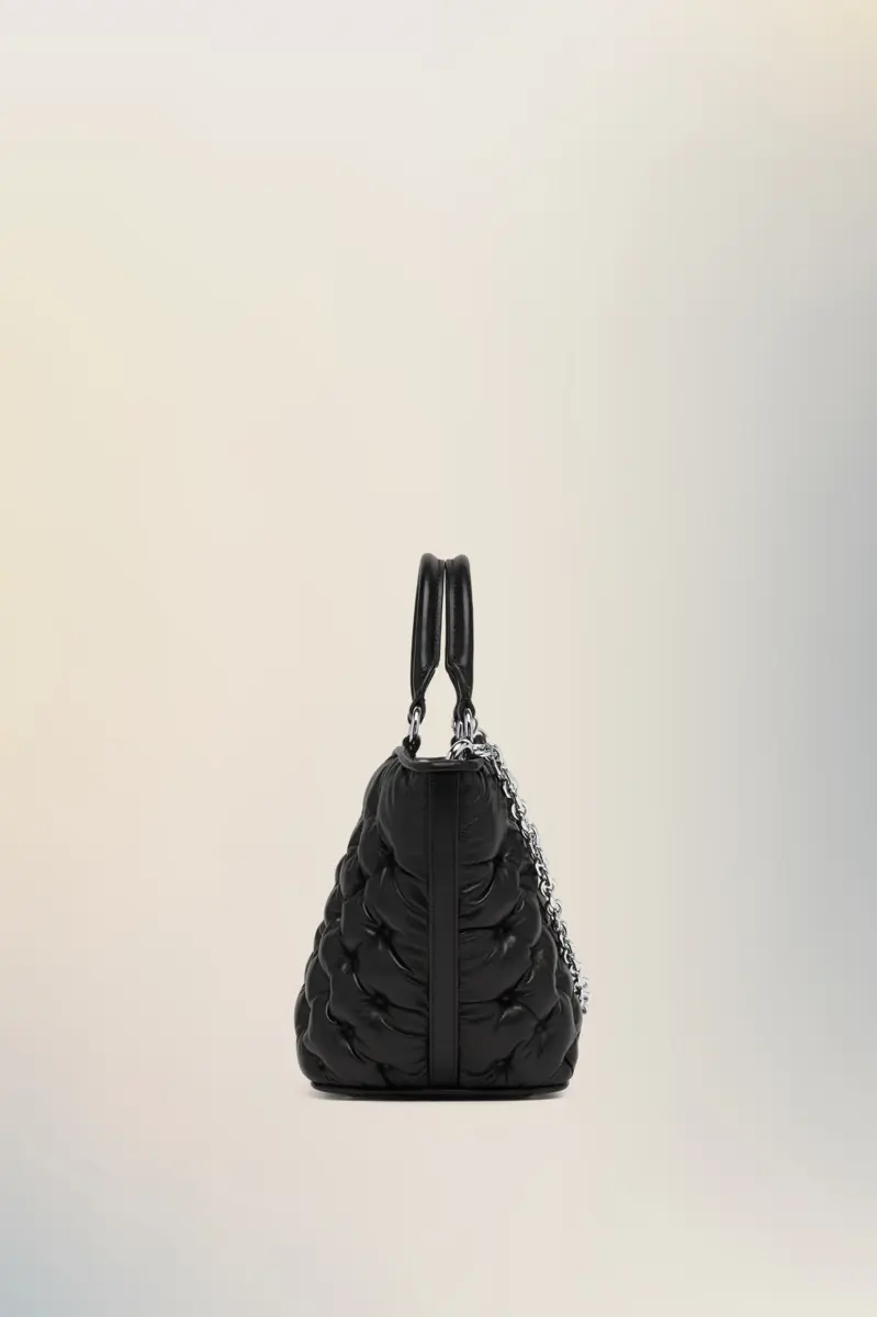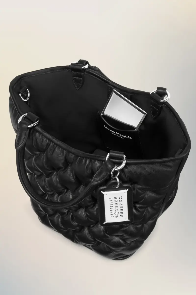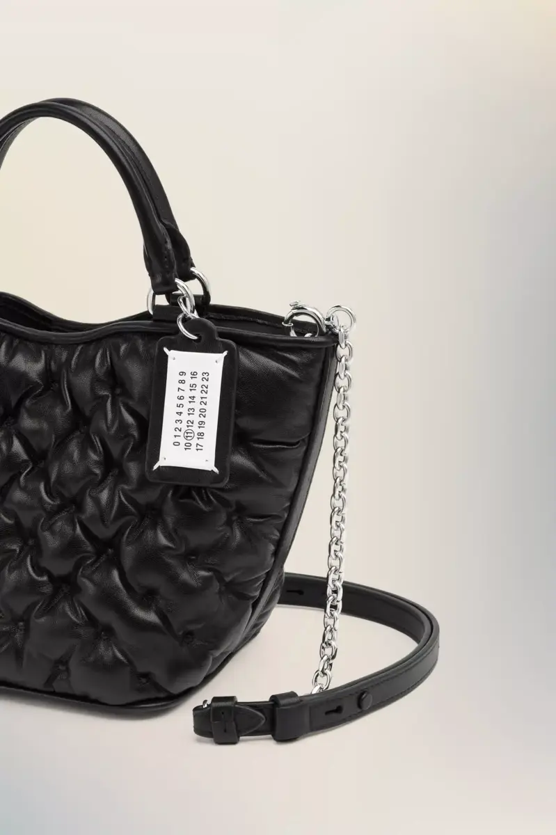 The Glam Slam embroidery tote mini is crafted with a quilted, padded body and silver-tone chain strap. Its distinctive texture mimics the traditional matelassé quilting of Marseilles – a key reference behind the line, which debuted in the SS18 collection. Reflecting the notion of unconscious glamour, the Glam Slam balances softness and structure with instinctive ease. Finished with the Maison’s numeric logo tag and a hidden pocket mirror for on-the-go elegance.