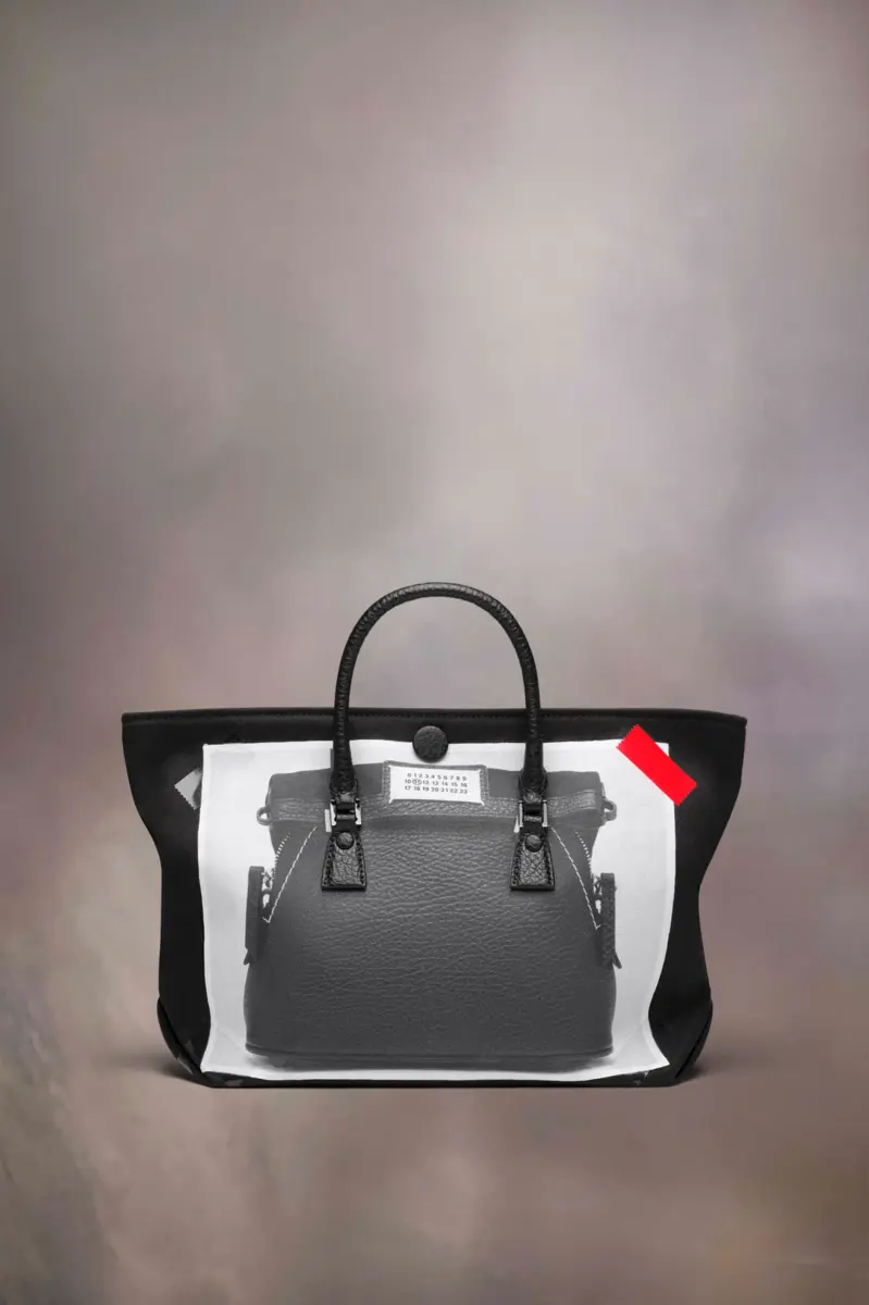The trompe l’œil 5AC micro comes in printed mackintosh and leather with a trompe l’oeil 5AC design – accented with the logo label on the front. The iconic 5AC line takes its name from the French word ‘sac’ (bag). It explores the Maison’s Anonymity of the lining concept. The bag’s metal rivets are covered in leather by hand, with the metal visible only where needed, for a clean aspect. Artisanal details include the bag’s exposed edges hand-painted in tone with the leather.