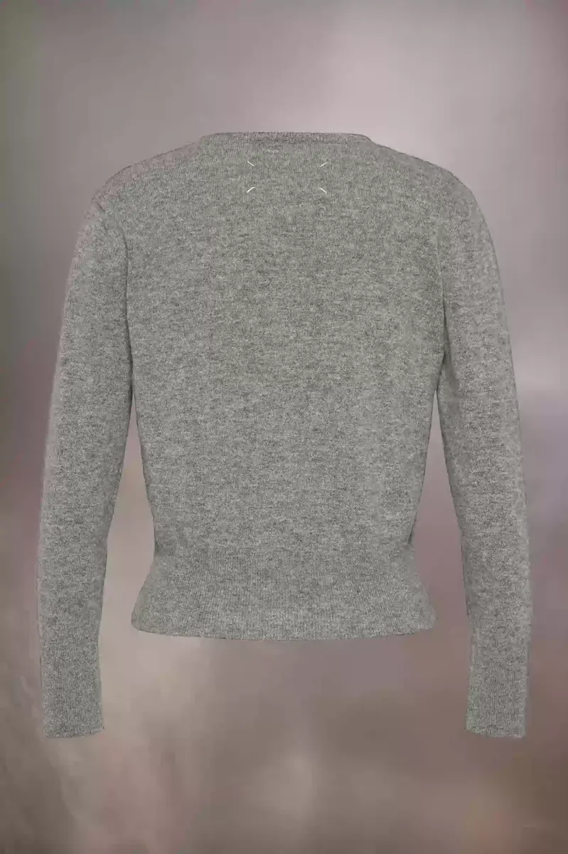 In virgin wool, the minimal knitwear cardigan has a classic crew-neck design with tonal button front. It offers a slightly cropped relaxed fit. Featuring long sleeves with ribbed trims around the neck, cuffs and at the hem for further texture. Maison Margiela’s signature, the four stitches, appear at the back; the opposite of a label.