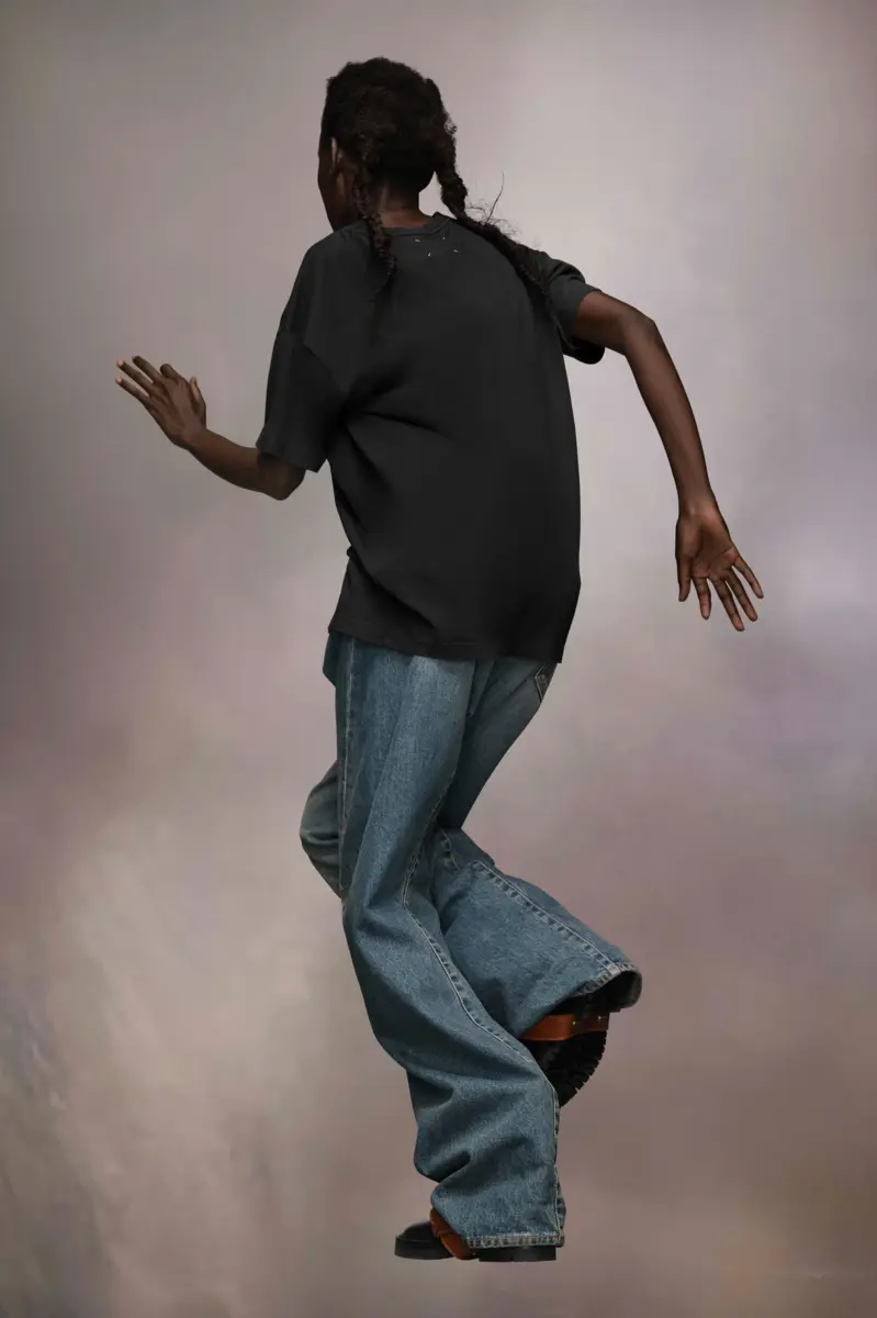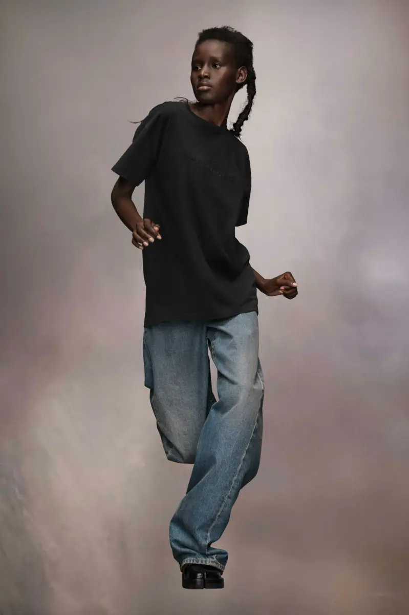 The cotton jersey T-shirt features the Maison Margiela reverse logo embroidery across the chest. Maison Margiela’s signature, the Four stitches, appear at the back; the opposite of a label.
