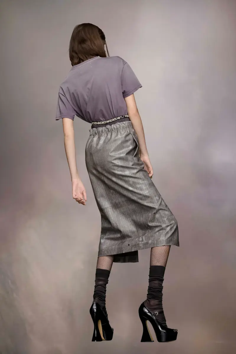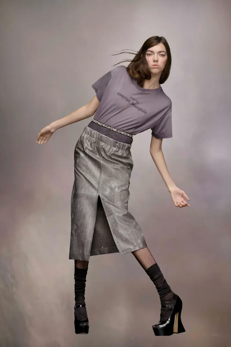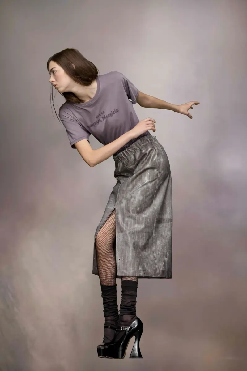 The cotton jersey T-shirt features the new reverse logo, with reverse applicated stitch to give the impression it has been sewn and then unstitched. Maison Margiela’s signature, the Four stitches, appear at the back; the opposite of a label.