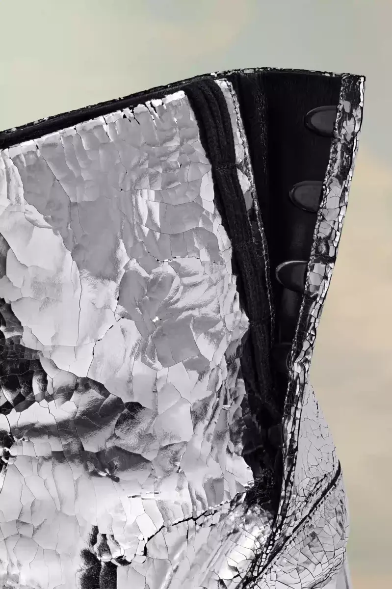 Crafted in a broken mirror finish, these low-heeled ankle boots feature the Tabi split-toe, inspired by the traditional 15th century Japanese sock bearing the same name – launched for the Maison’s debut collection in 1989. It captures the avant-garde and insubordinate spirit of the Maison and exists as a heritage classic, continually explored through each collection.