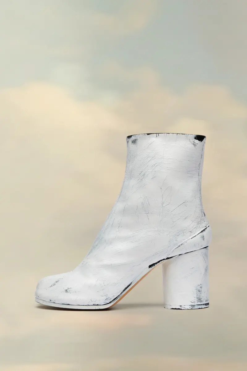 Crafted in vintage nappa leather, these block-heel ankle boots feature the Maison’s Bianchetto treatment, which wears with use for an evolving look. They are designed with the Tabi split-toe, inspired by the traditional 15th century Japanese sock bearing the same name – launched for the Maison’s debut collection in 1989. It captures the avant-garde and insubordinate spirit of the Maison and exists as a heritage classic, continually explored through each collection. 8cm heel.