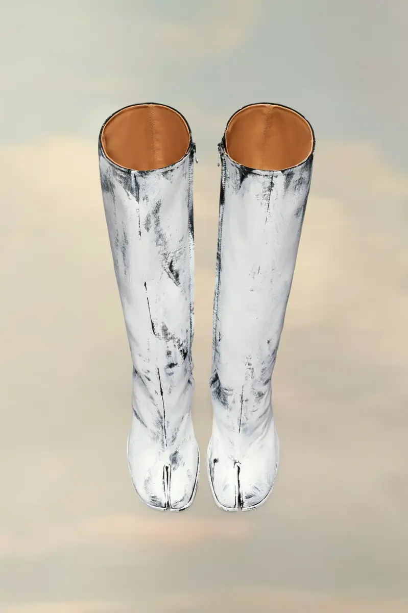 Crafted in vintage nappa leather, these block-heel knee-high boots feature the Maison’s Bianchetto treatment, which wears with use for an evolving look. They are designed with the Tabi split-toe, inspired by the traditional 15th century Japanese sock bearing the same name – launched for the Maison’s debut collection in 1989. It captures the avant-garde and insubordinate spirit of the Maison and exists as a heritage classic, continually explored through each collection.