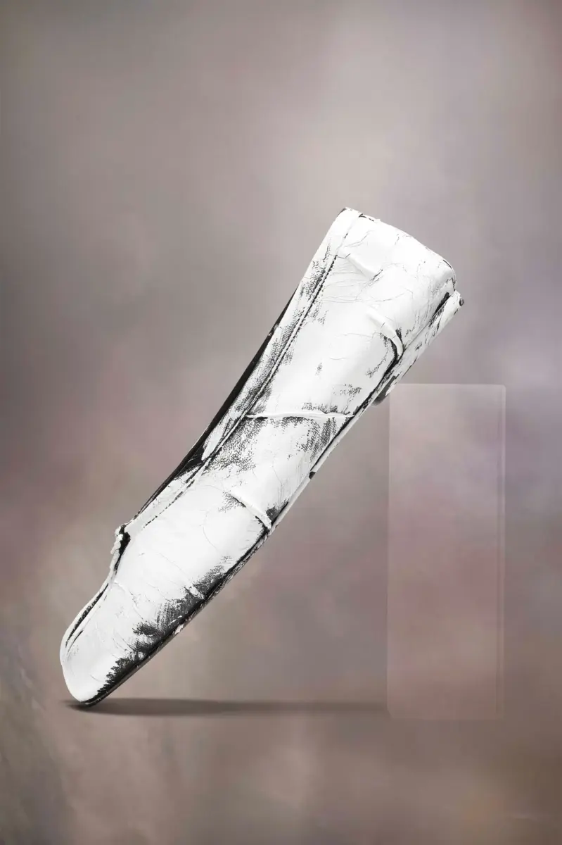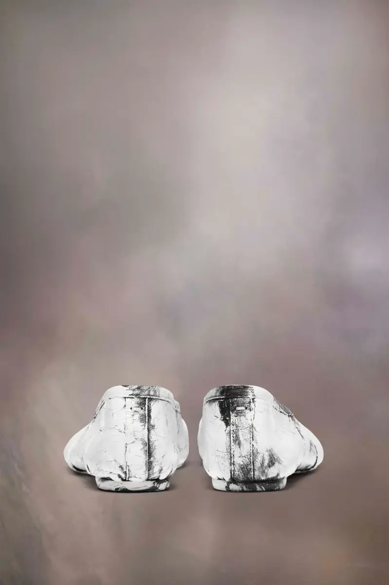 In nappa leather with hand-painted treatment, the Maison presents the Tabi new ballerinas, which take their design from ballerina shoes in the archives. They are crafted with handmade folds, manually worked to create an artisanal vintage effect at the sides. They feature the Tabi split-toe, inspired by the traditional 15th century Japanese sock bearing the same name – launched for the Maison’s debut collection in 1989. It captures the avant-garde and insubordinate spirit of the Maison and exists as a heritage classic, continually explored through each collection.
